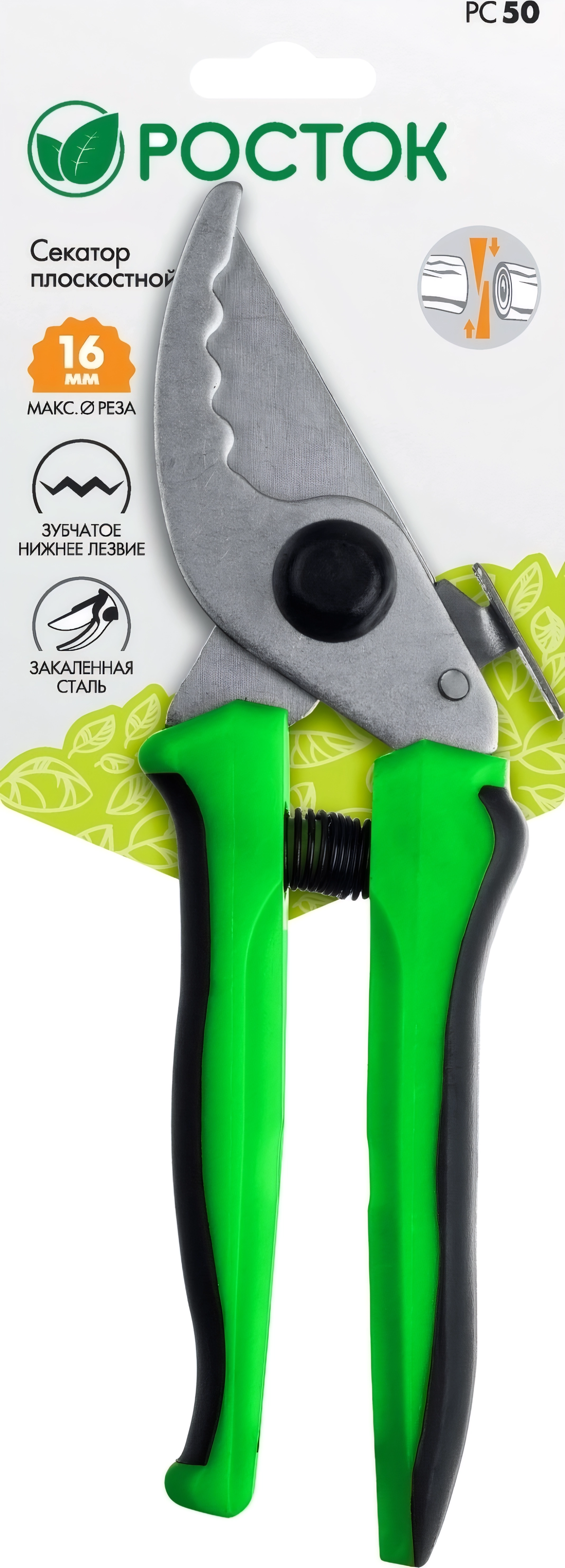 Компактный плоскостной секатор РОСТОК PC-50, 190 мм, стальные закалённые лезвия, двухкомпонентные рукоятки