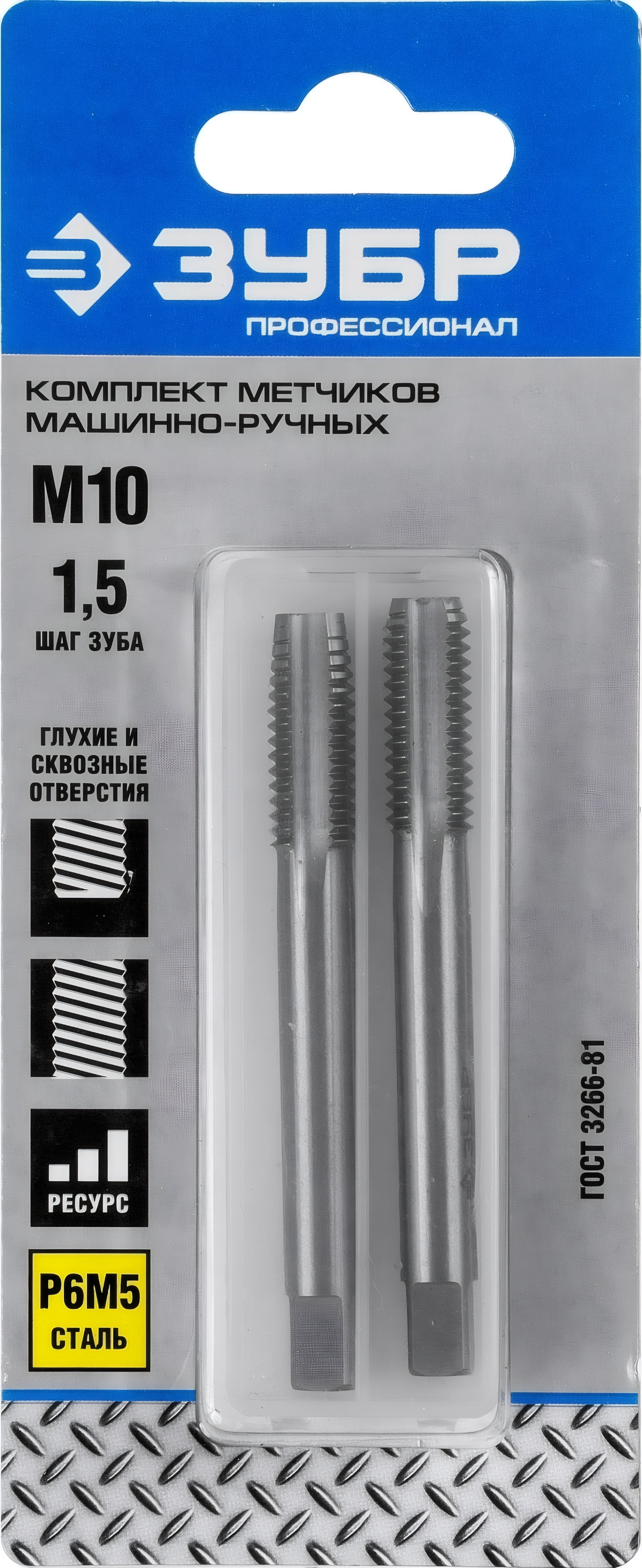 Комплект машинно-ручных метчиков ЗУБР М10 x 1.5 мм сталь Р6М5