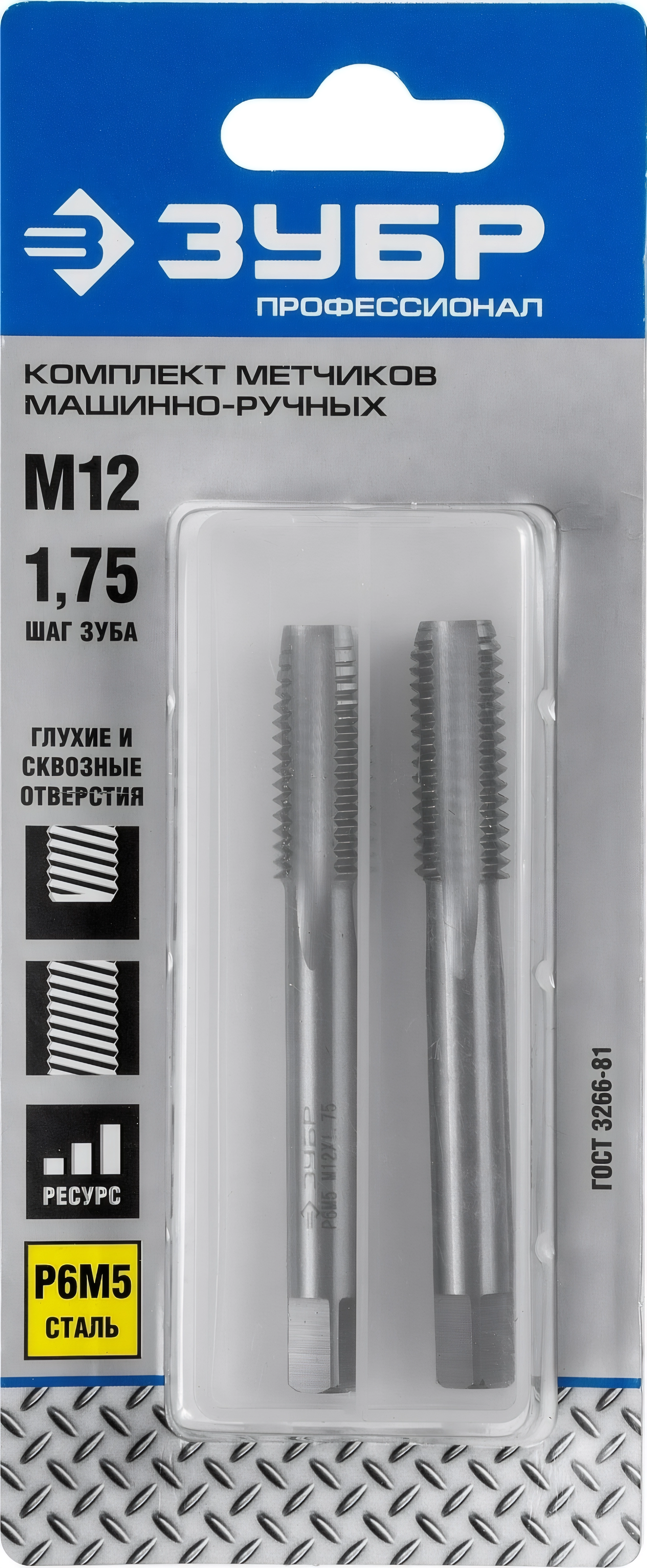 Комплект машинно-ручных метчиков ЗУБР М12 x 1.75 мм сталь Р6М5