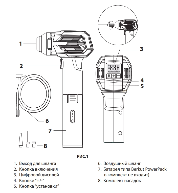 - Время непрерывной работы: 7–10 мин (рекомендованный отдых 15–20 мин)