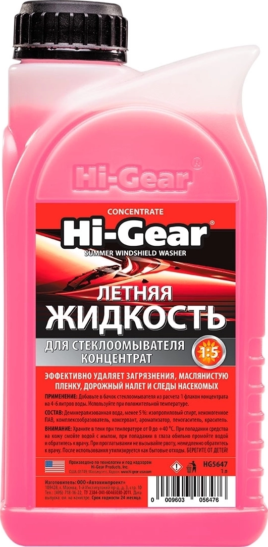 Hi-Gear летняя жидкость для стеклоомывателей автомобилей (концентрат) 1 литр
