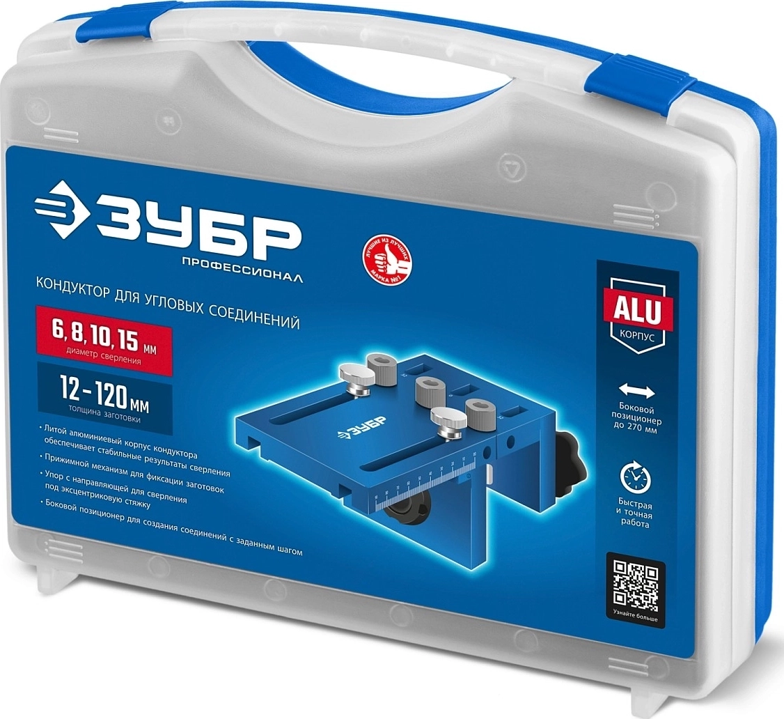 Кондуктор для угловых соединений ЗУБР 4 отверстия, в кейсе