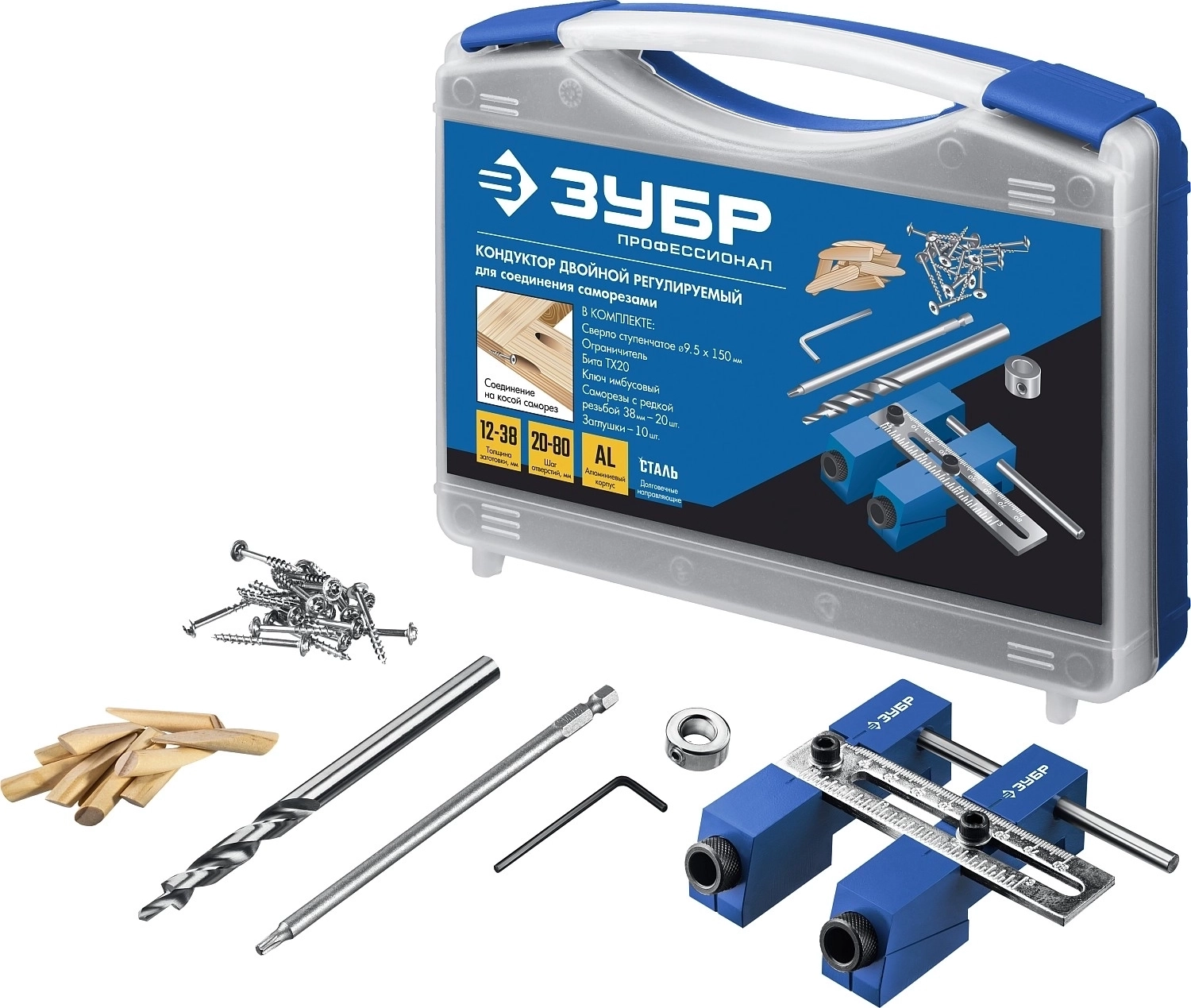 ЗУБР 30085 Профессионал 4 отверстия, кондуктор для угловых соединений, в кейсе арт. 119630