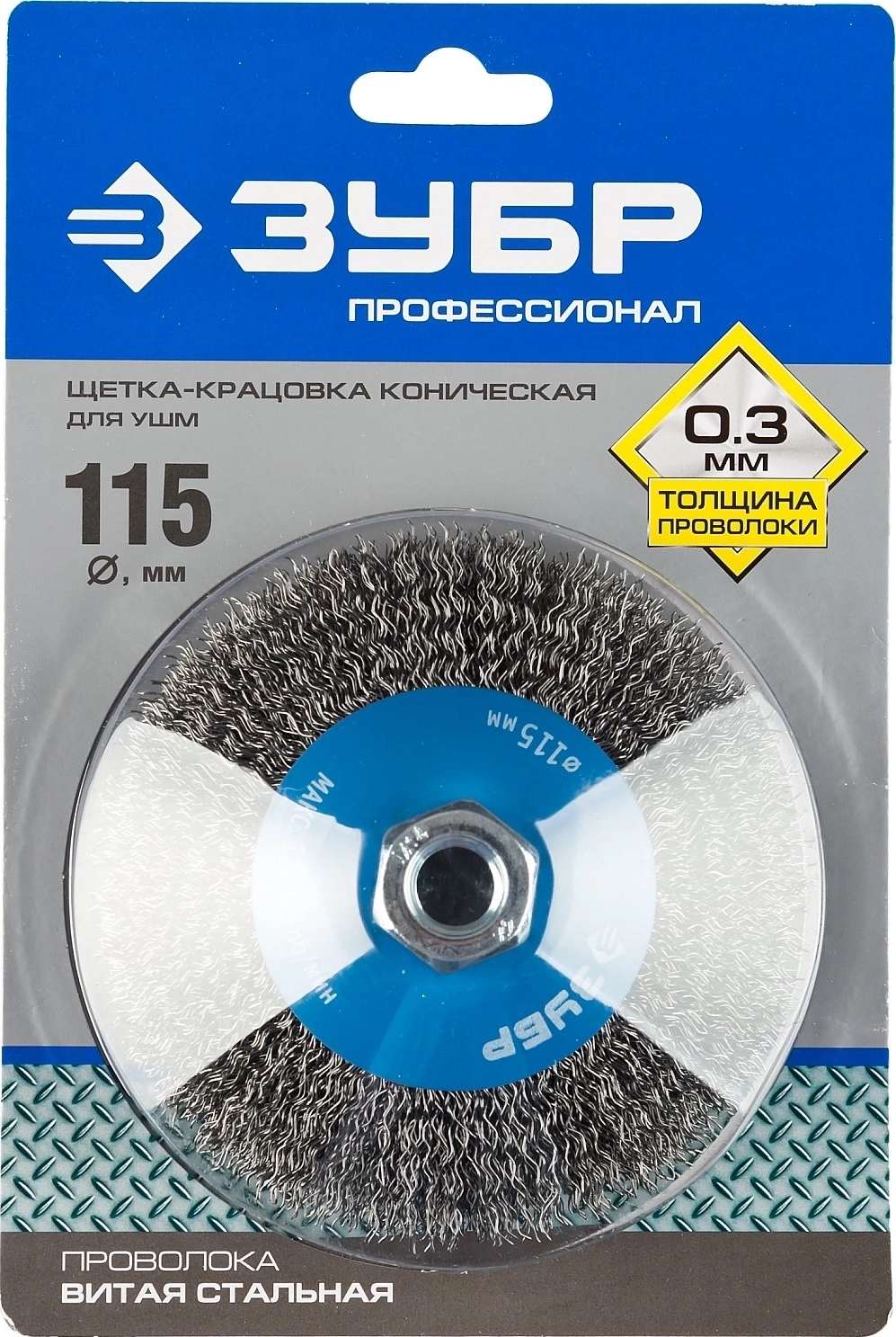 Коническая щетка-крацовка для УШМ ЗУБР 115 мм витая стальная проволока 0.3 мм