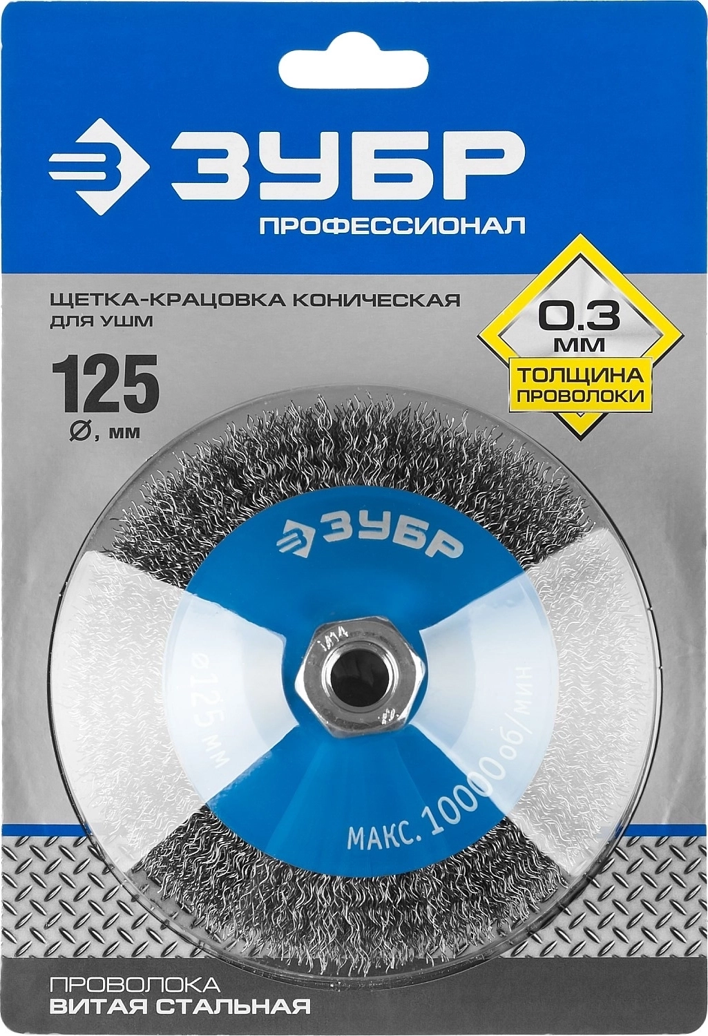 Коническая щетка-крацовка для УШМ ЗУБР 125 мм витая стальная проволока 0.3 мм