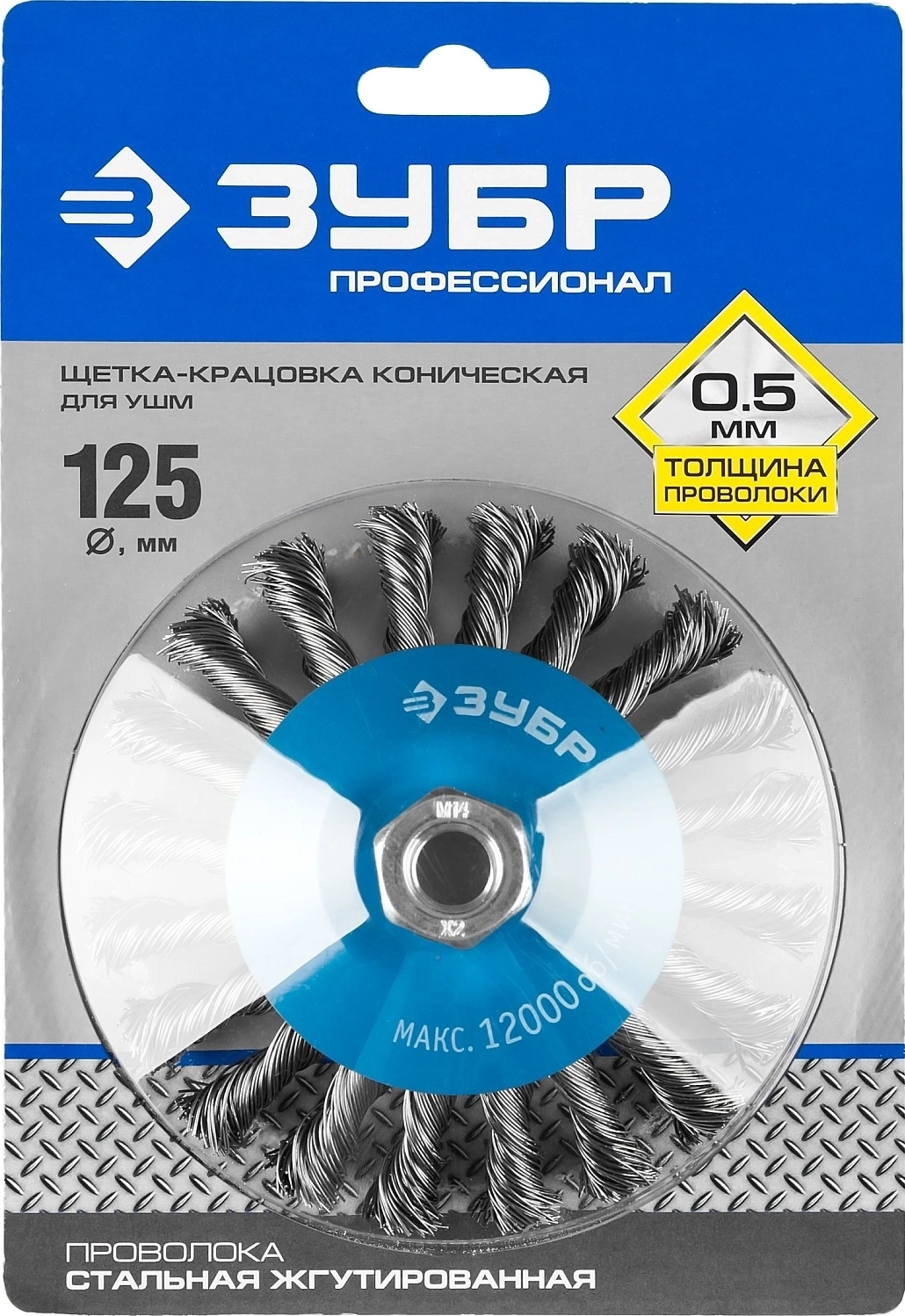 Коническая щетка-крацовка для УШМ ЗУБР 125 мм стальная проволока 0.5 мм