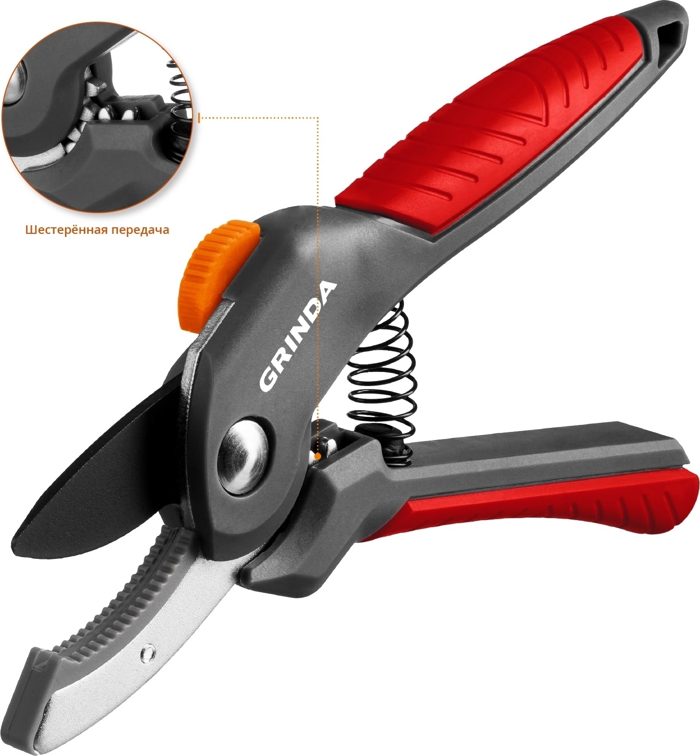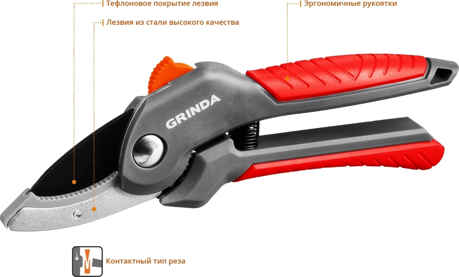 Контактный секатор GRINDA G-24, 200 мм, с двухкомпонентными рукоятками