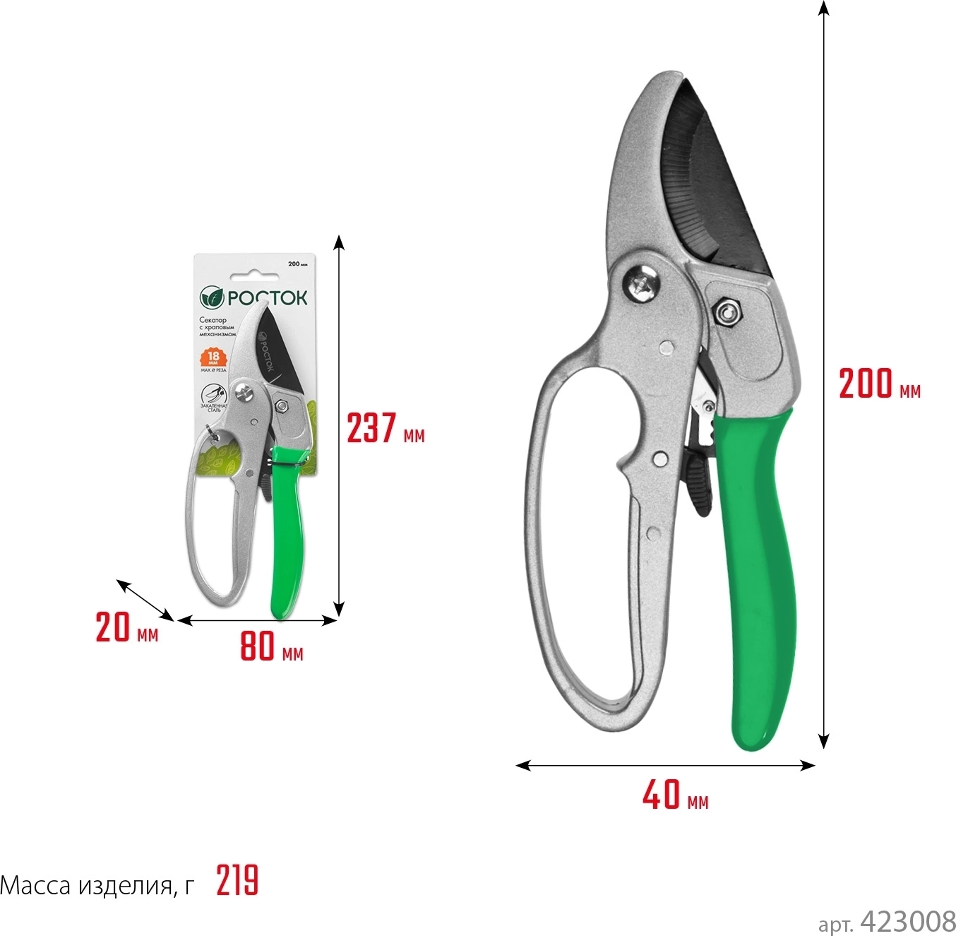 Все секаторы РОСТОК произведены на высокоточном оборудовании из качественных материалов, что гарантирует чистый рез и продолжительный срок службы.0