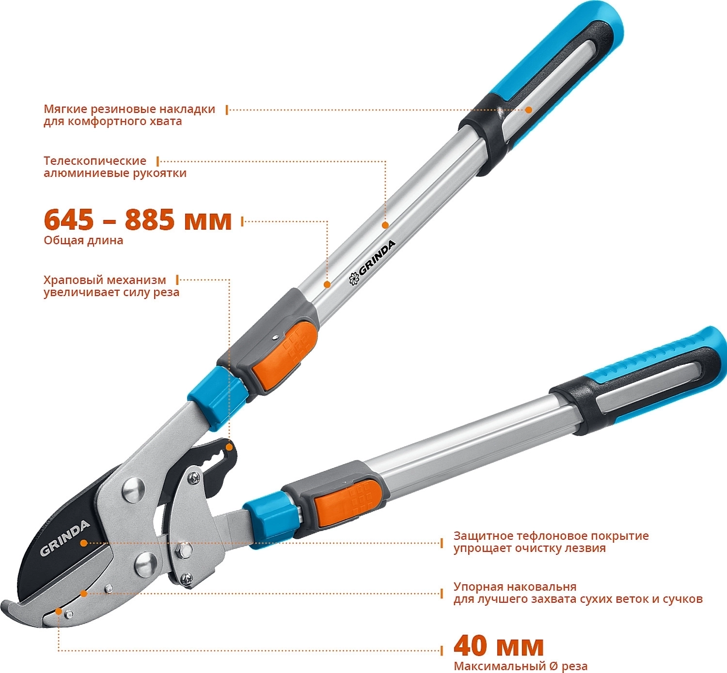 Контактный сучкорез PROLine GRINDA TX-980A 645 - 885 мм кованные лезвия храповый механизм телескопический