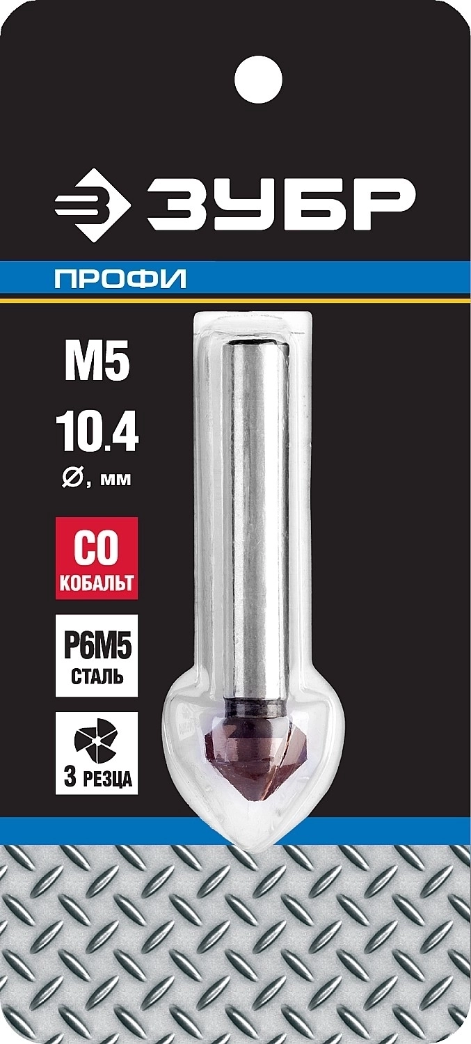 Конусный зенкер ЗУБР Кобальт 10.4 x 50 мм для раззенковки М5 кобальтовое покрытие