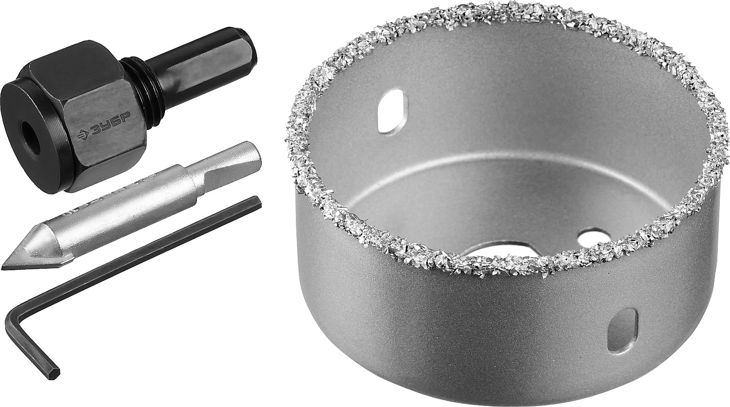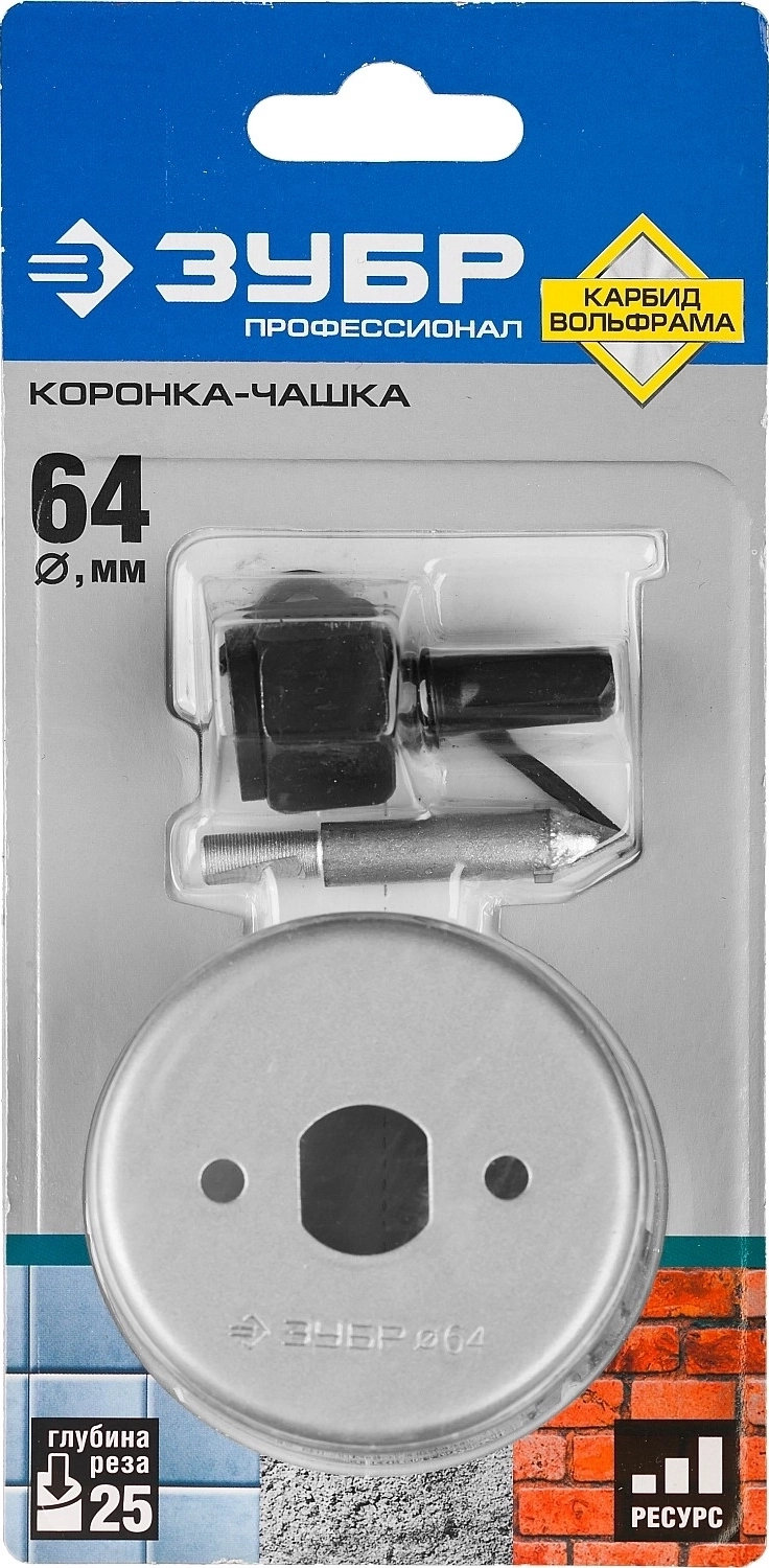 Коронка-чашка с державкой и сверлом ЗУБР 64 мм L 25 мм карбид вольфрама