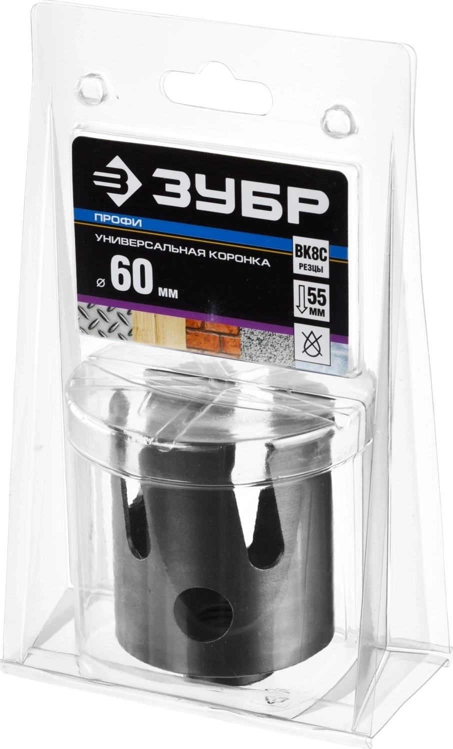 Коронка с твердосплавными резцами ЗУБР Проуниверсал, 60 мм