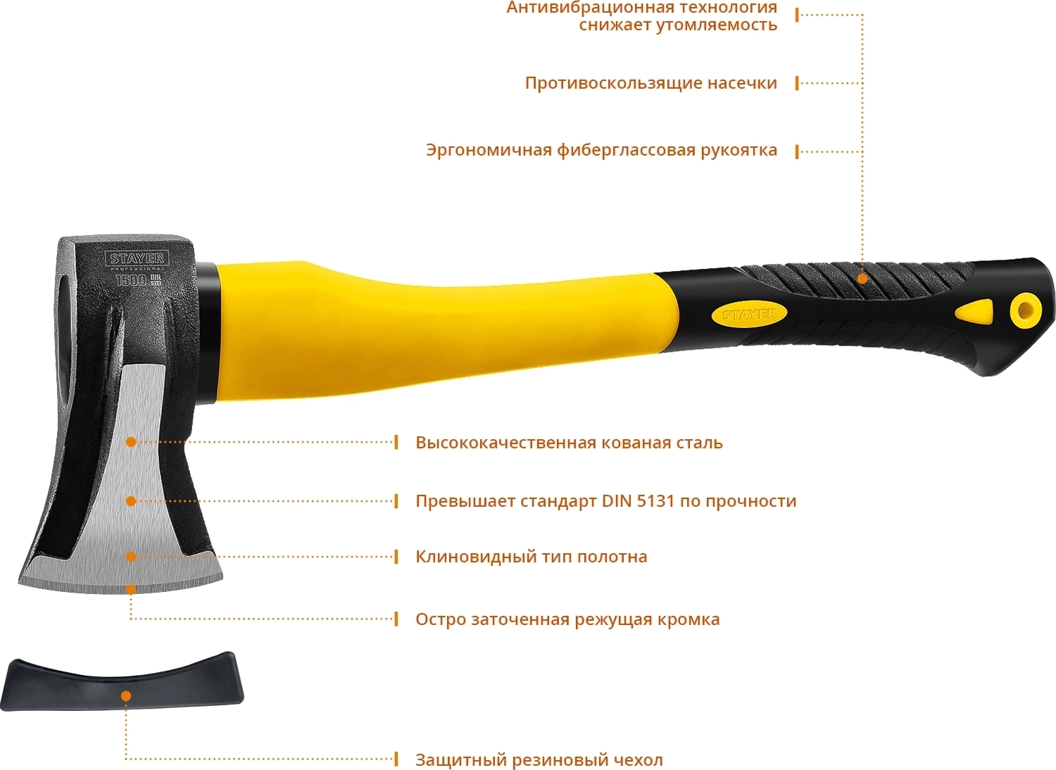 Кованый топор-колун Professional STAYER FIBERGLASS 1000/1500 г 380 мм