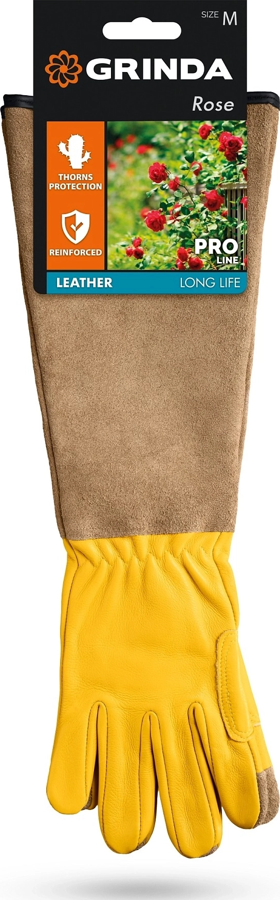 Кожаные садовые перчатки GRINDA ROSE, M (8), для колючих кустарников с увеличенной крагой, усиленные