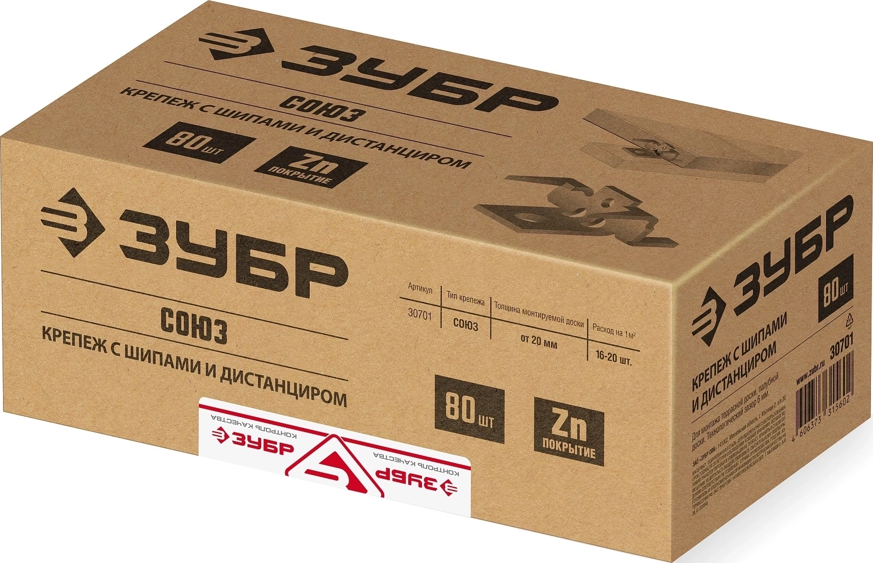 Крепеж с шипами и дистанциром для террасной доски Союз, цинк, 80 шт арт. 107699