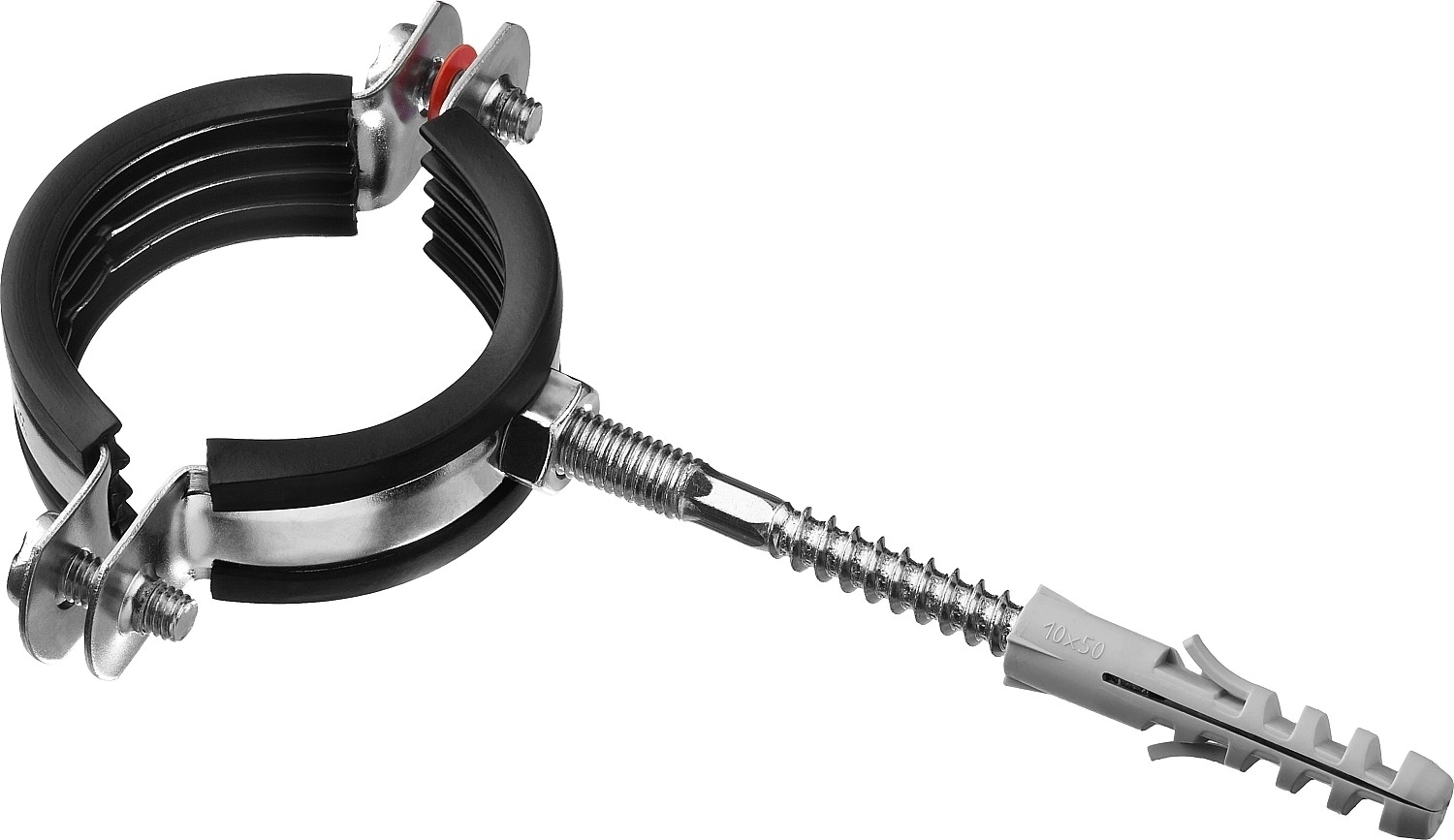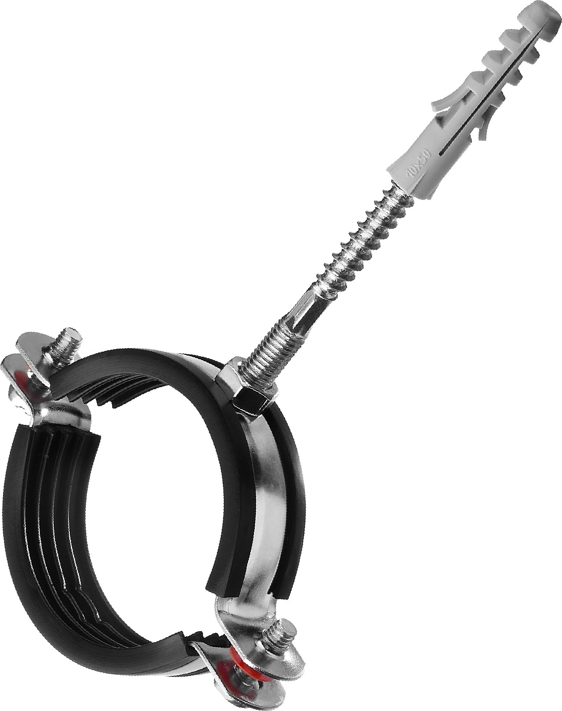 Трубный хомут с сантехнической шпилькой и дюбелем 1 1/2″, цинк, 1 шт арт. 108535