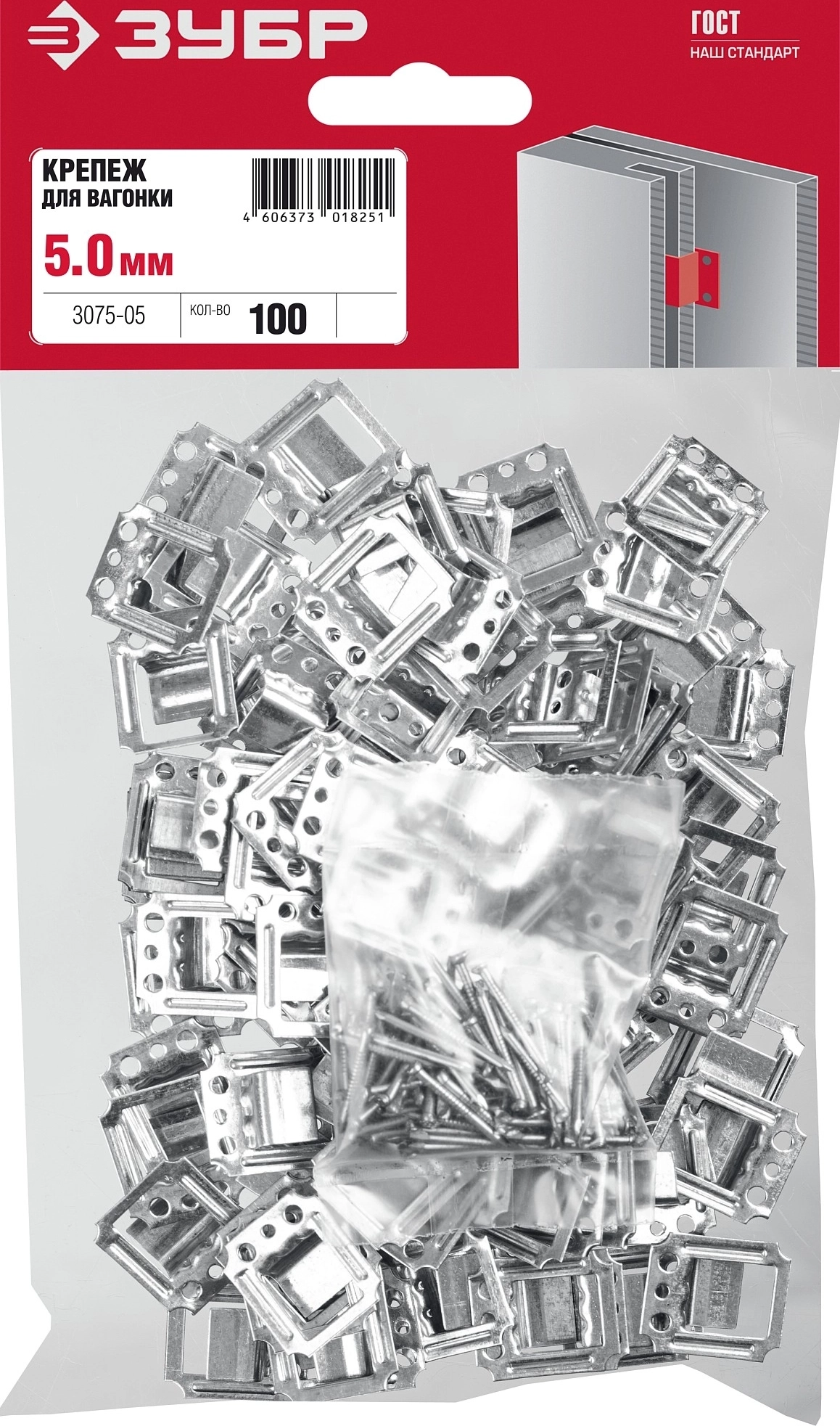 Крепеж для вагонки ЗУБР Кляймер, 5 мм, цинк, 100 шт