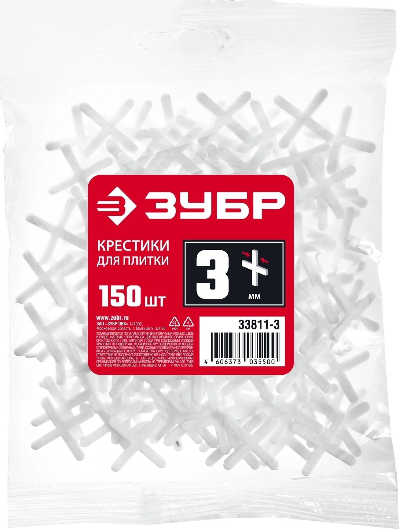 Крестики для плитки ЗУБР 3 мм, 150 шт