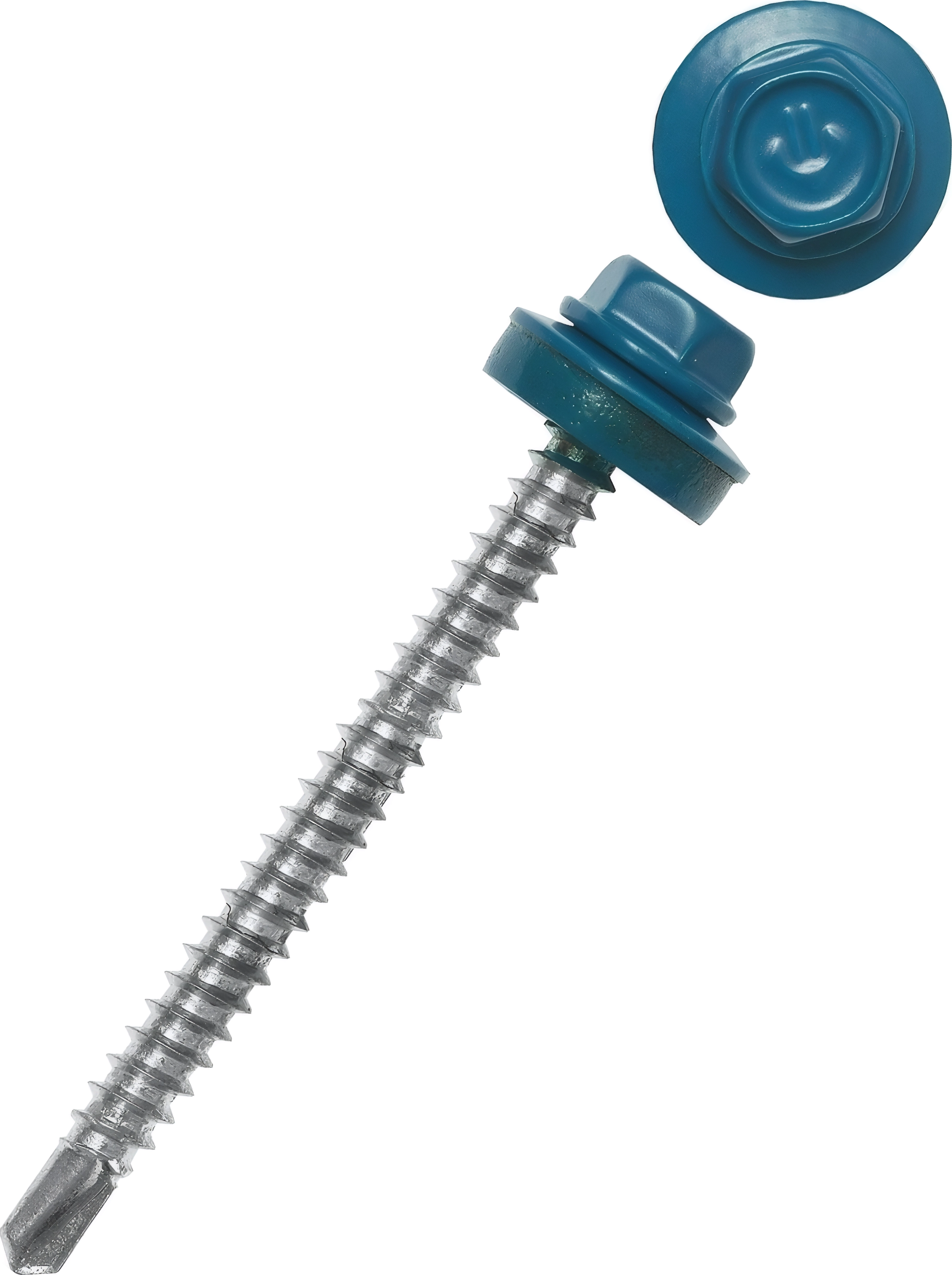 Кровельные саморезы изготовлены из стального прутка с высоким содержанием углерода. Контроль за геометрией самореза начинается с калибровки прутка и заканчивается тщательной проверкой размеров готового изделия. Нормативная твердость стали достигается термической обработкой. Поверхностная твердость мин. 560HV, твердость в сердцевине 240-425HV. Шайба с прокладкой EPDM плотно прижимается к кровельному материалу, герметизируя просверленное отверстие. Шестигранная головка выдерживает большой крутящий момент и значительно облегчает вкручивание самореза. Геометрические размеры: диаметр шайбы (Dw) - 13.90-14.15мм, толщина прокладки (Ar) - 2мм, Размер под ключ (S) - 7.8-7.9мм, диаметр резьбы (D) - 4.75-4.95мм, диаметр сверла (dp) - 2.8-2.9мм, длина сверла (ds) - 4.0-4.8мм, шаг резьбы (Pi) - 2.12мм.