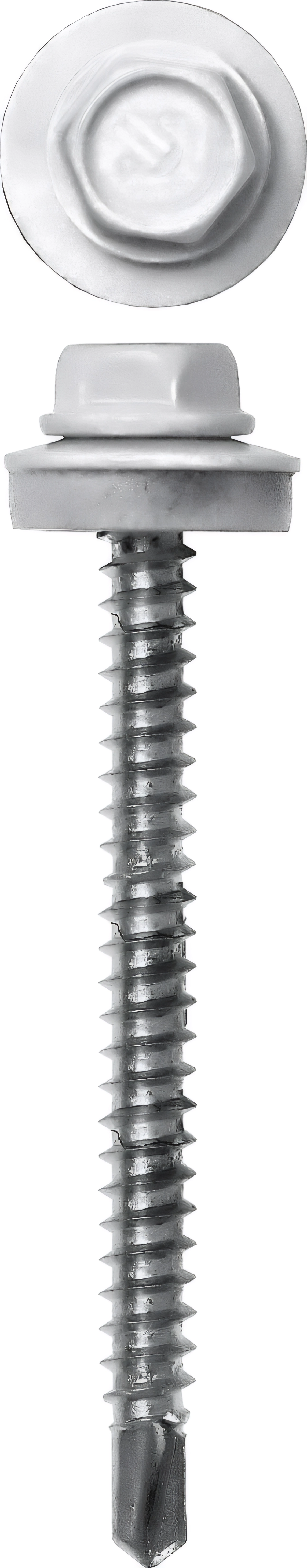 Кровельные саморезы изготовлены из стального прутка с высоким содержанием углерода. Контроль за геометрией самореза начинается с калибровки прутка и заканчивается тщательной проверкой размеров готового изделия. Нормативная твердость стали достигается термической обработкой. Поверхностная твердость мин. 560HV, твердость в сердцевине 240-425HV. Шайба с прокладкой EPDM плотно прижимается к кровельному материалу, герметизируя просверленное отверстие. Шестигранная головка выдерживает большой крутящий момент и значительно облегчает вкручивание самореза. Геометрические размеры: диаметр шайбы (Dw) - 13.90-14.15мм, толщина прокладки (Ar) - 2мм, Размер под ключ (S) - 7.8-7.9мм, диаметр резьбы (D) - 4.75-4.95мм, диаметр сверла (dp) - 2.8-2.9мм, длина сверла (ds) - 4.0-4.8мм, шаг резьбы (Pi) - 2.12мм.