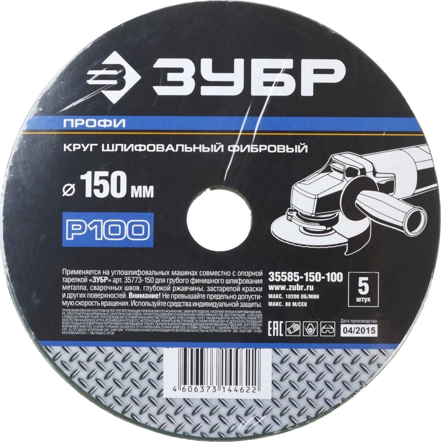 Круг шлифовальный ЗУБР ″ПРОФИ″ фибровый для УШМ P100 150х22мм 5 листов