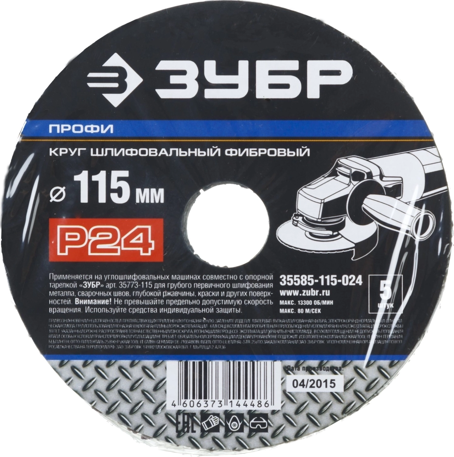 Круг шлифовальный ЗУБР ″ПРОФИ″ фибровый для УШМ P24 115х22мм 5 листов
