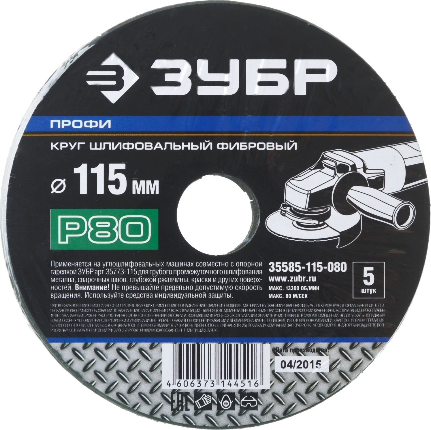 Круг шлифовальный ЗУБР ″ПРОФИ″ фибровый для УШМ P80 115х22мм 5 листов