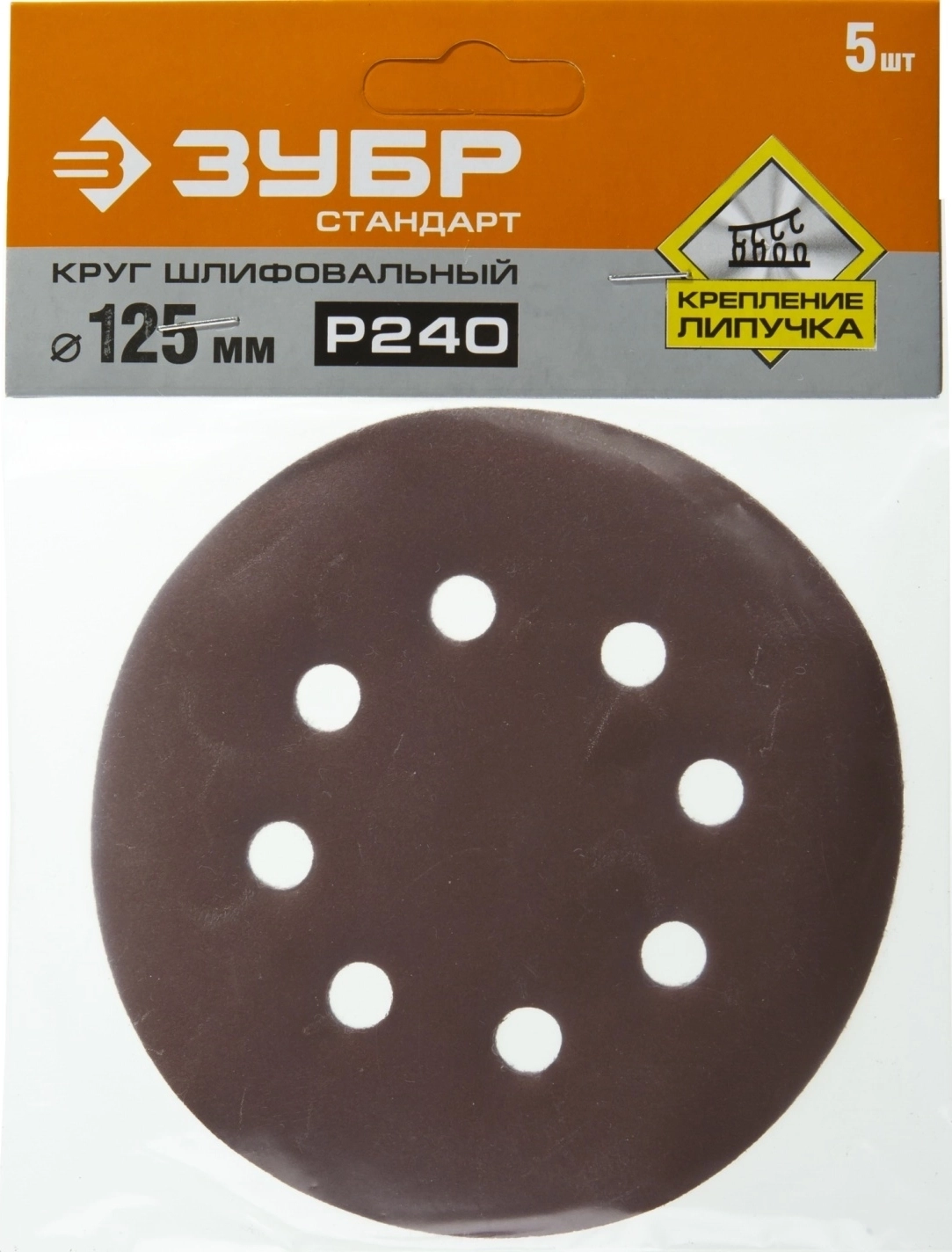 Круг шлифовальный ЗУБР из абразивной бумаги на велкро основе 8 отв. Р240 125мм 5 шт