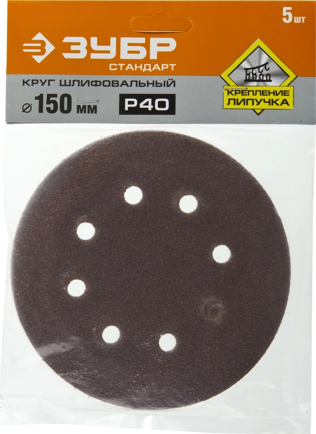 Круг шлифовальный ЗУБР из абразивной бумаги на велкро основе 6 отв. Р40 150мм 5 шт