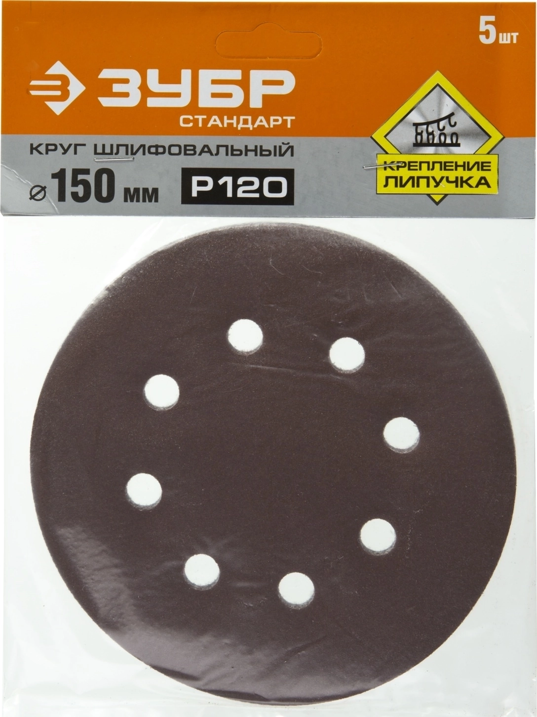 Круг шлифовальный ЗУБР из абразивной бумаги на велкро основе 6 отв. Р120 150мм 5 шт