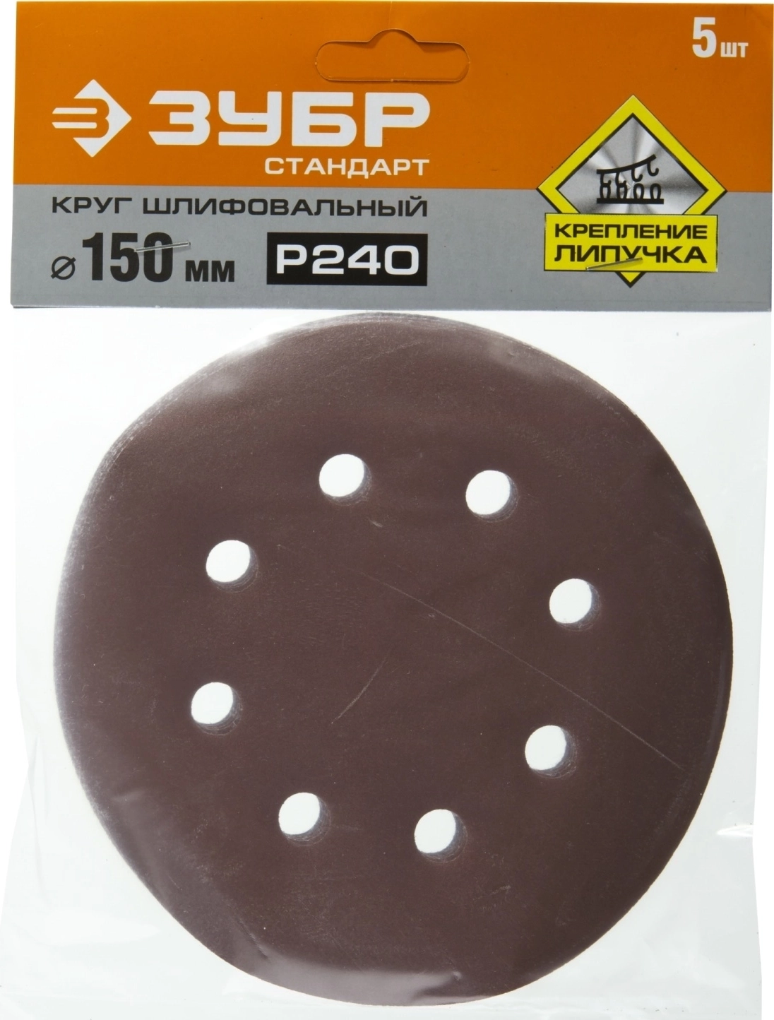 Круг шлифовальный ЗУБР из абразивной бумаги на велкро основе 6 отв. Р240 150мм 5 шт
