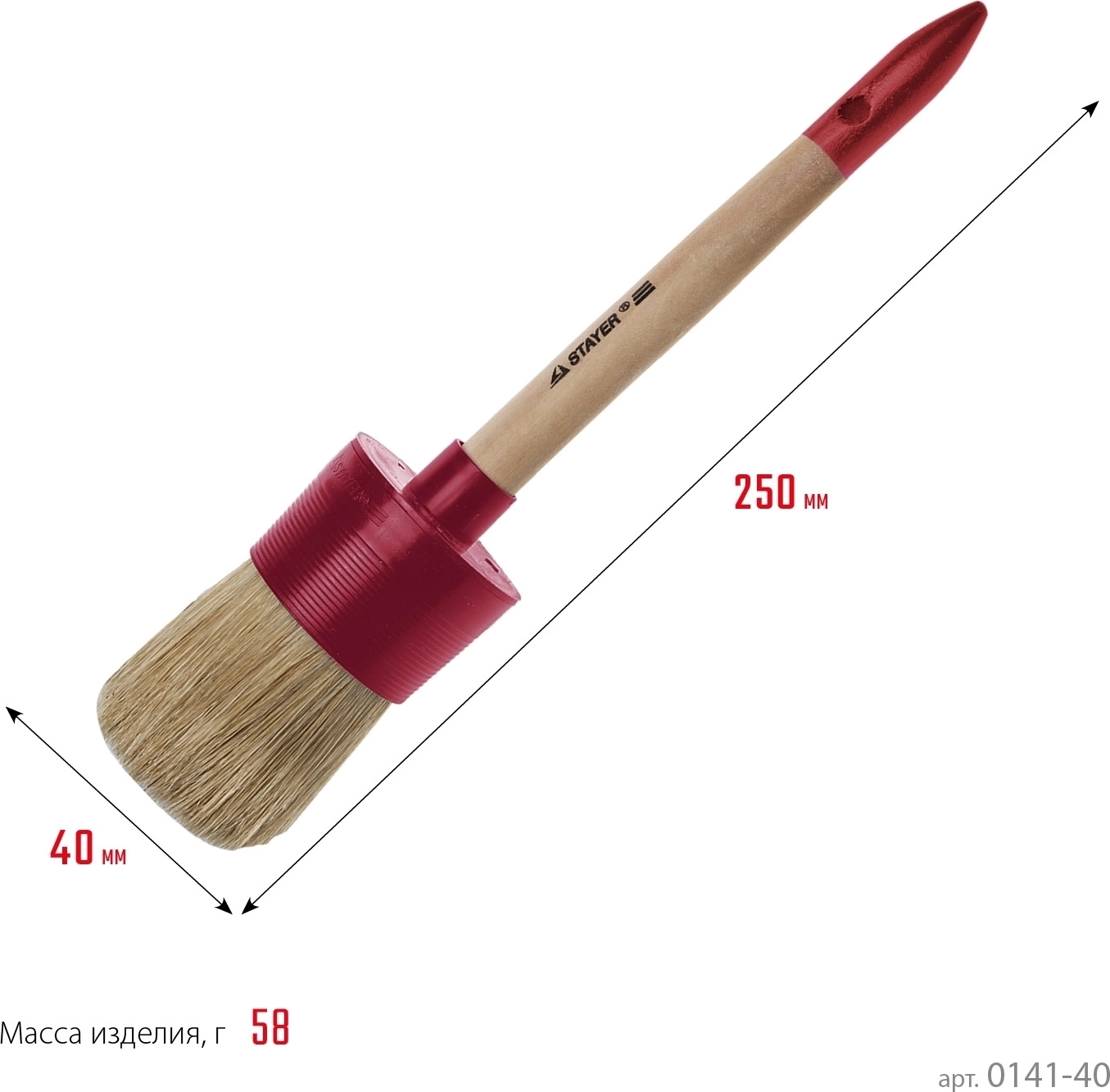 Круглая кисть STAYER UNIVERSAL 40 мм пластмассовый корпус светлая натуральная щетина деревянная ручка все виды ЛКМ 0141-40 - 12 шт