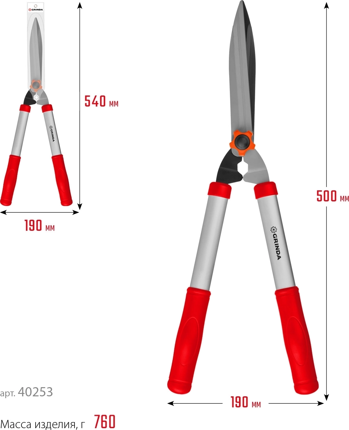Кусторез GRINDA GH-540, длина 540 мм, закаленные лезвия, антикор. покрытие, стальные рукоятки