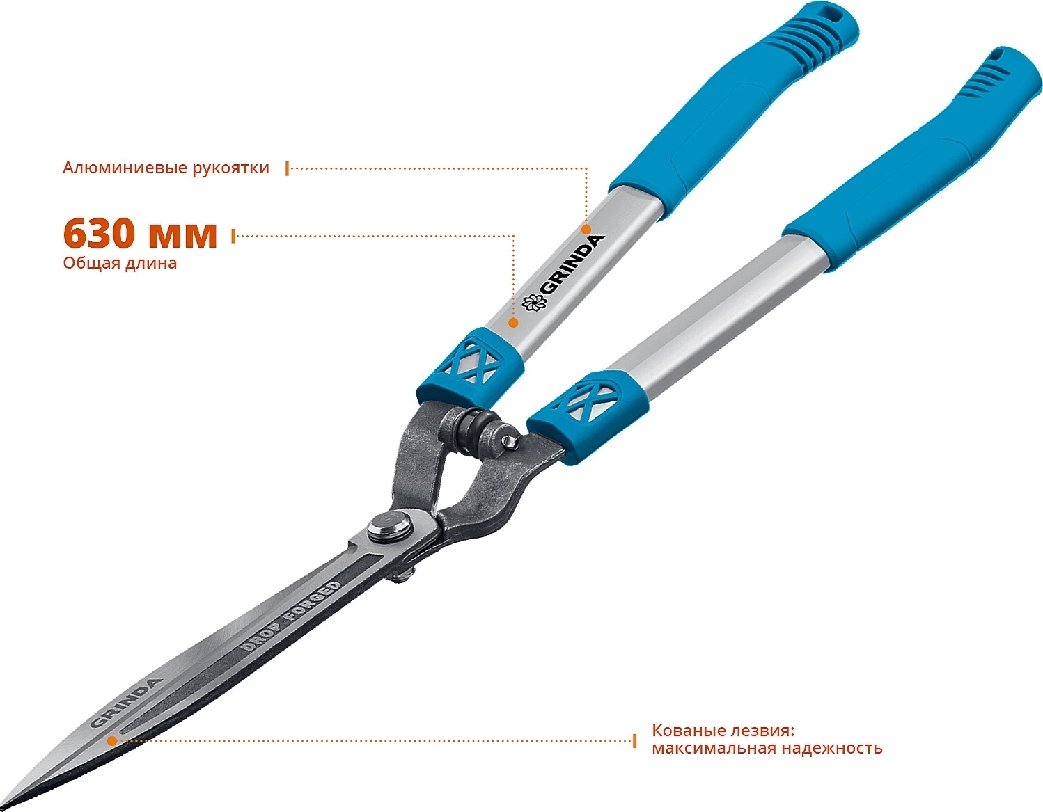 Кусторез PROLine GRINDA FH-630 длина 630 мм кованые лезвия антикор. покрытие алюминиевые рукоятки накладки РР
