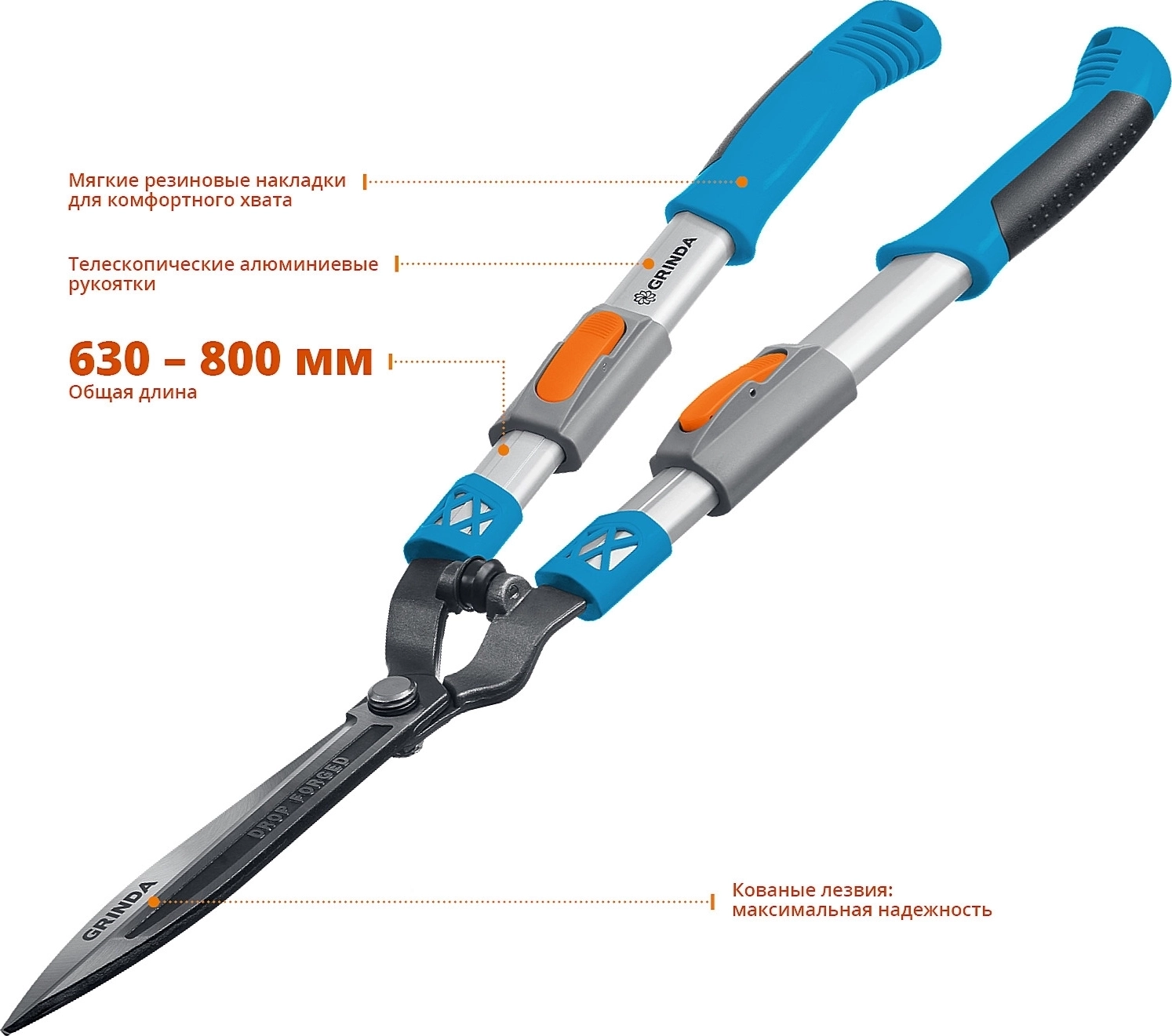 Кусторез PROLine GRINDA FH-800T длина 630 - 800 мм кованые лезвия телескопический алюминиевые рукоятки