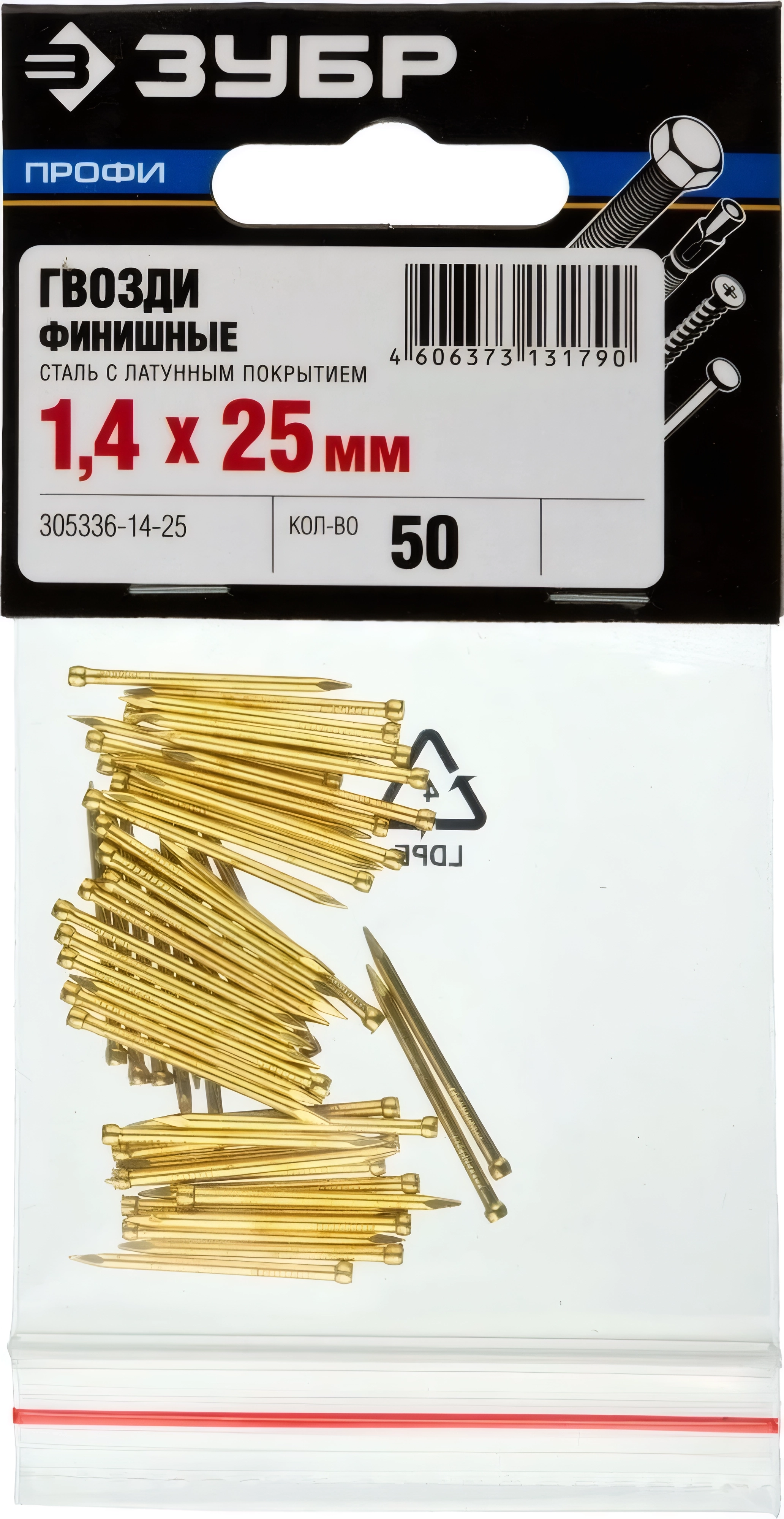 Латунированные финишные гвозди ЗУБР 25 x 1.4 мм 50 шт