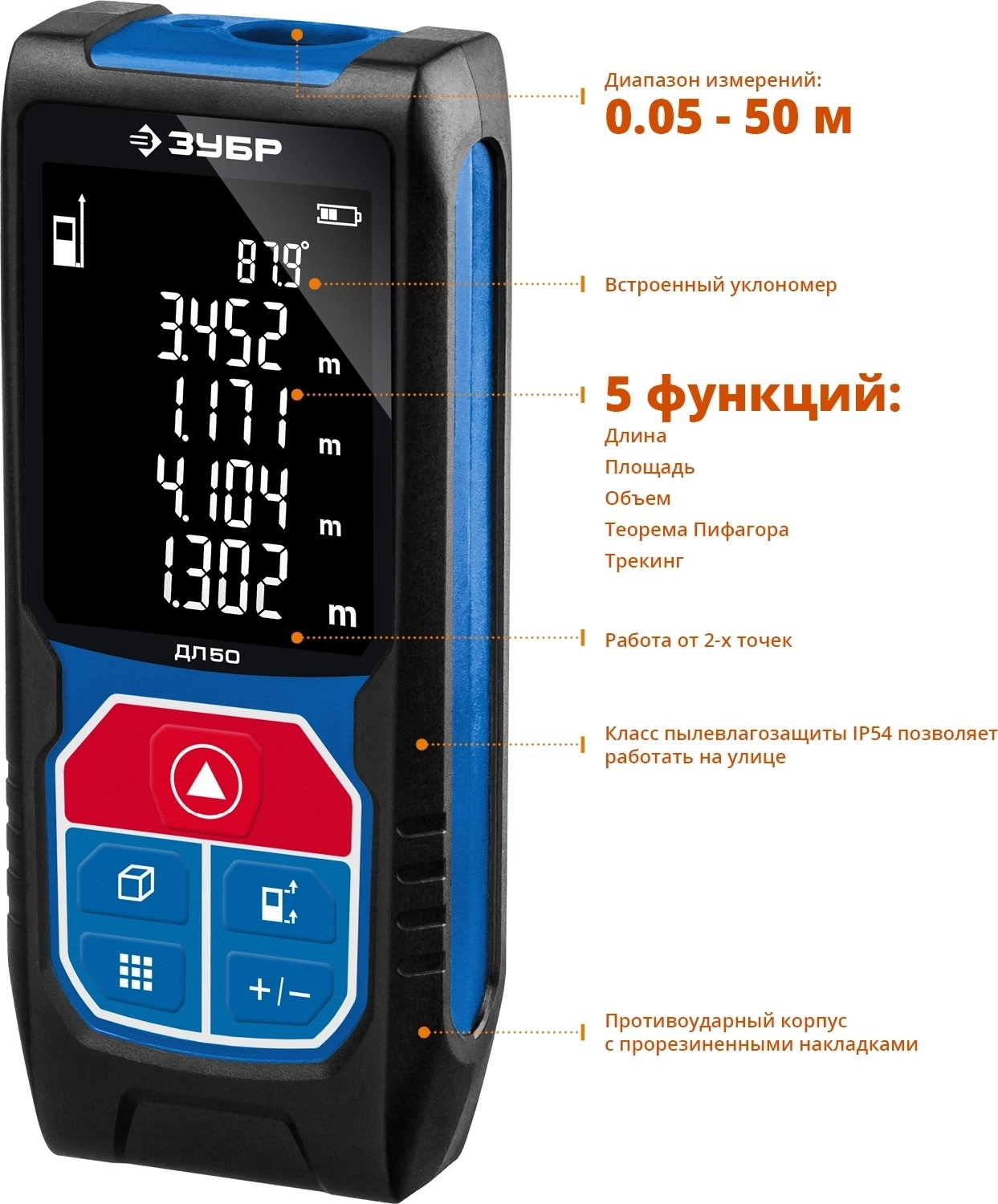 Лазерный дальномер ЗУБР ДЛ-50 50 м