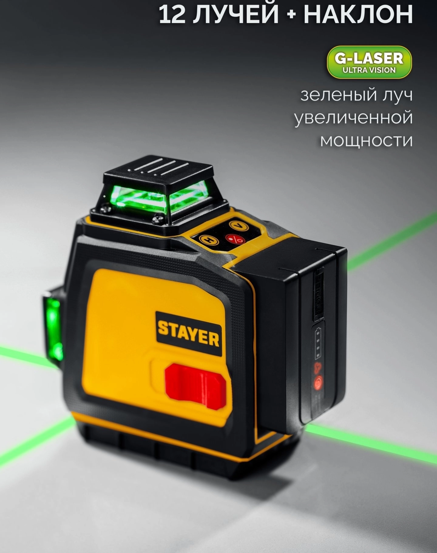 Лазерный зеленый нивелир STAYER SL-3D, 50м, точн. +/-0,5 мм/м