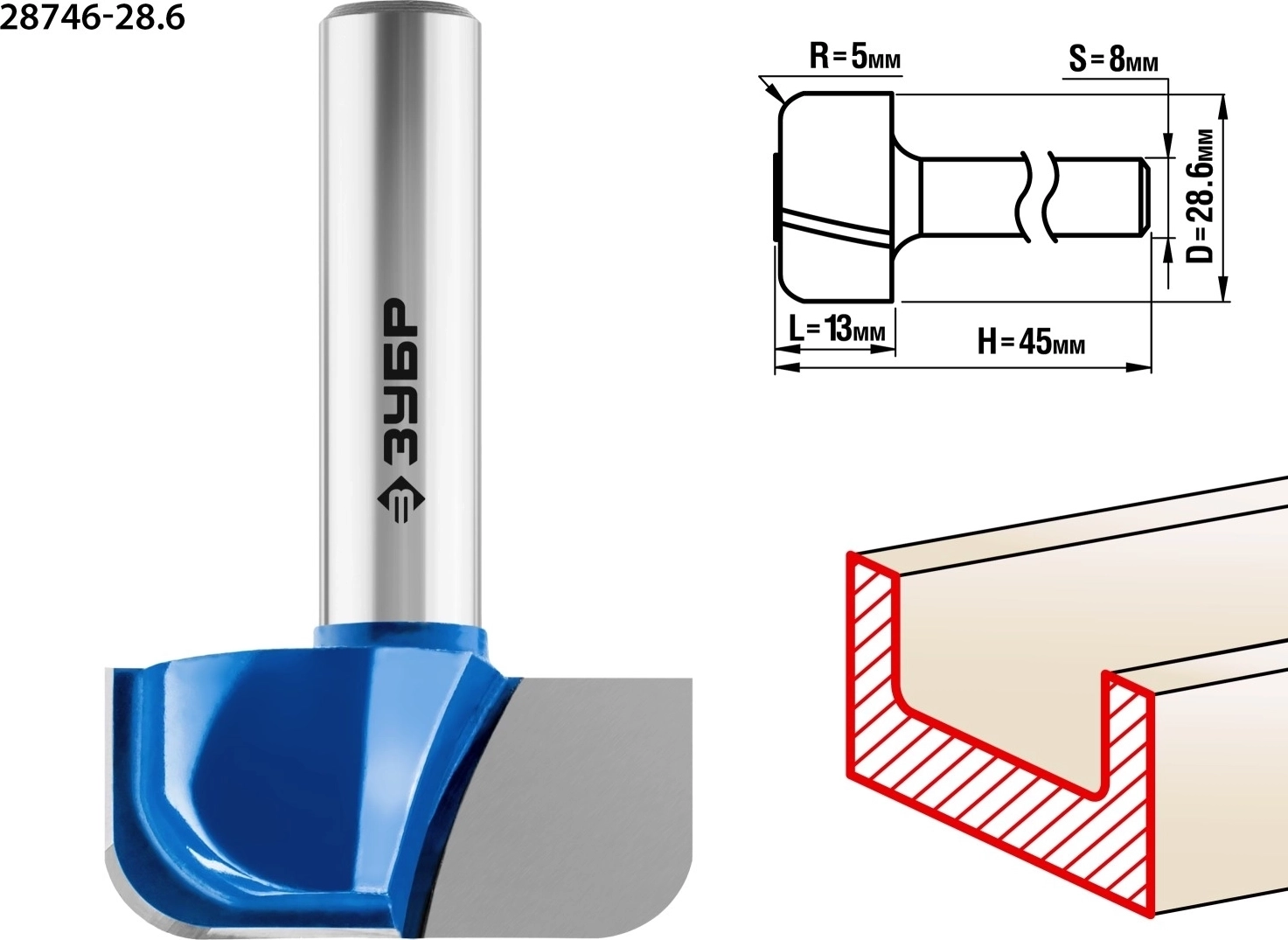 Фреза пазовая фасонная №7 28.6 x 13 мм радиус 5 мм арт. 102275