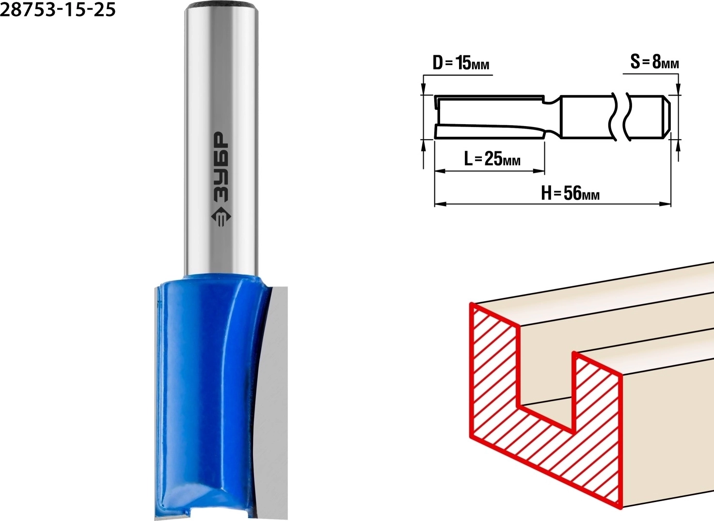 Фреза пазовая прямая 15 x 25 мм хвостовик 8 мм арт. 102301