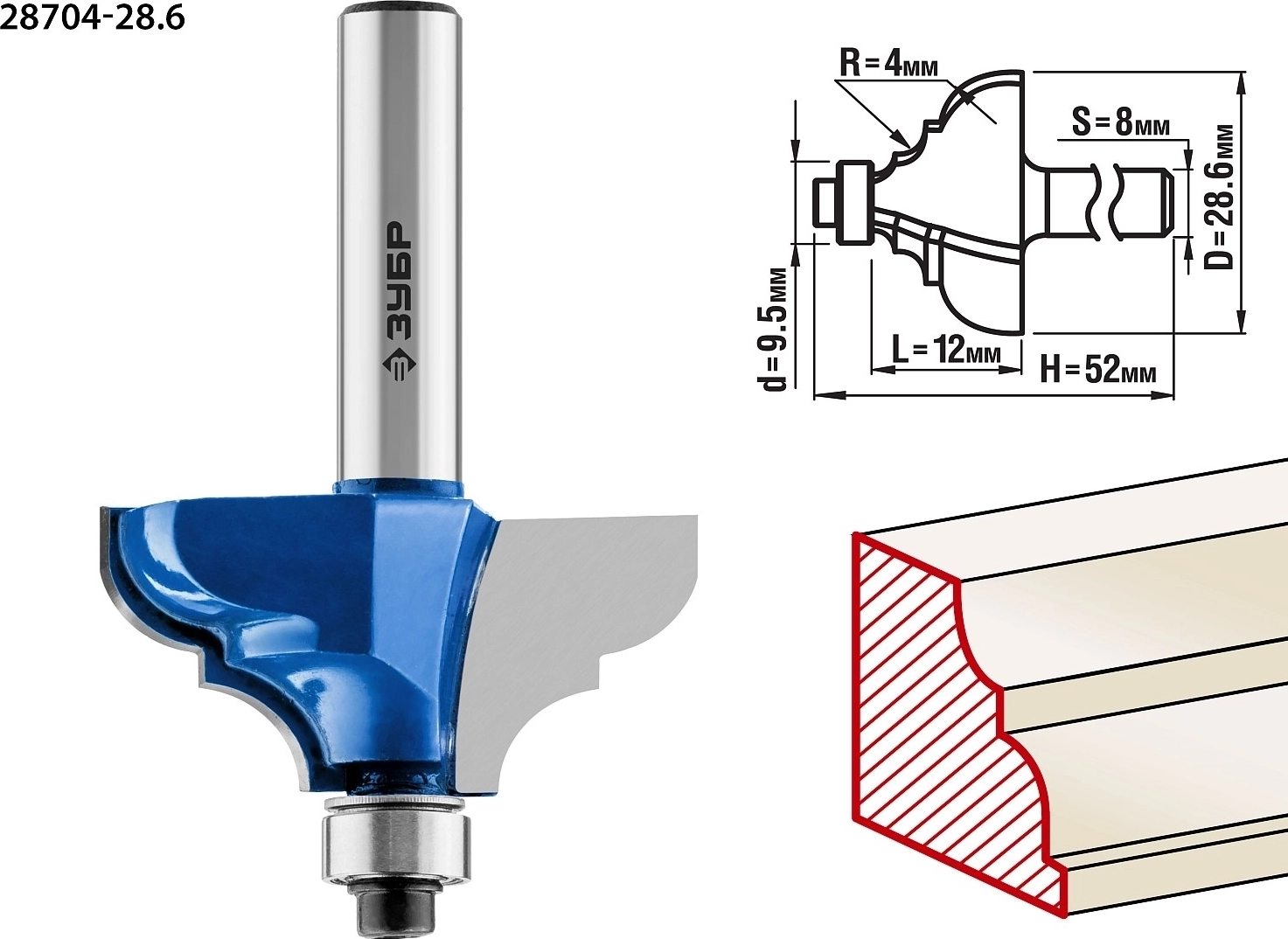 Фреза кромочная калевочная №2 28.6 x 12 мм радиус 4 мм арт. 102196