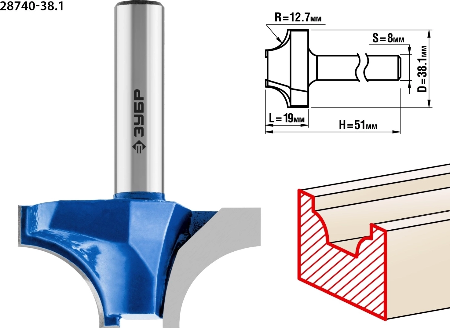 Фреза пазовая фасонная №1 38.1 x 19 мм радиус 12.7 мм арт. 102266