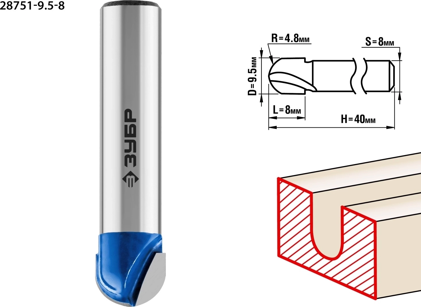 Фреза пазовая галтельная 9.5 x 8 мм радиус 4.8 мм арт. 102290