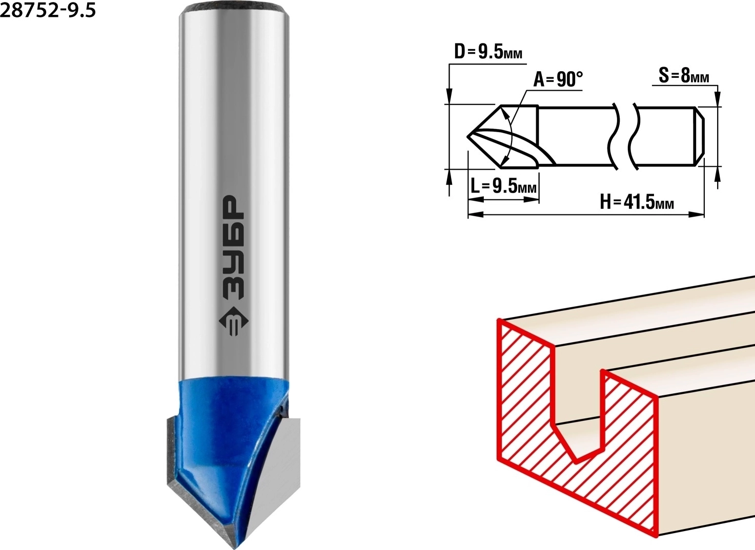Фреза пазовая галтельная V-образная 9.5 x 9.5 мм угол 90 гр. мм арт. 102295