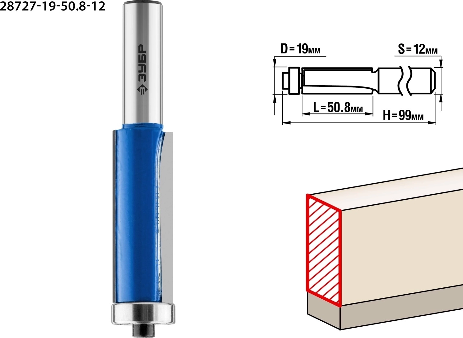 Фреза кромочная с нижним подшипником 19 x 50.8 мм хвостовик 12 мм арт. 102251