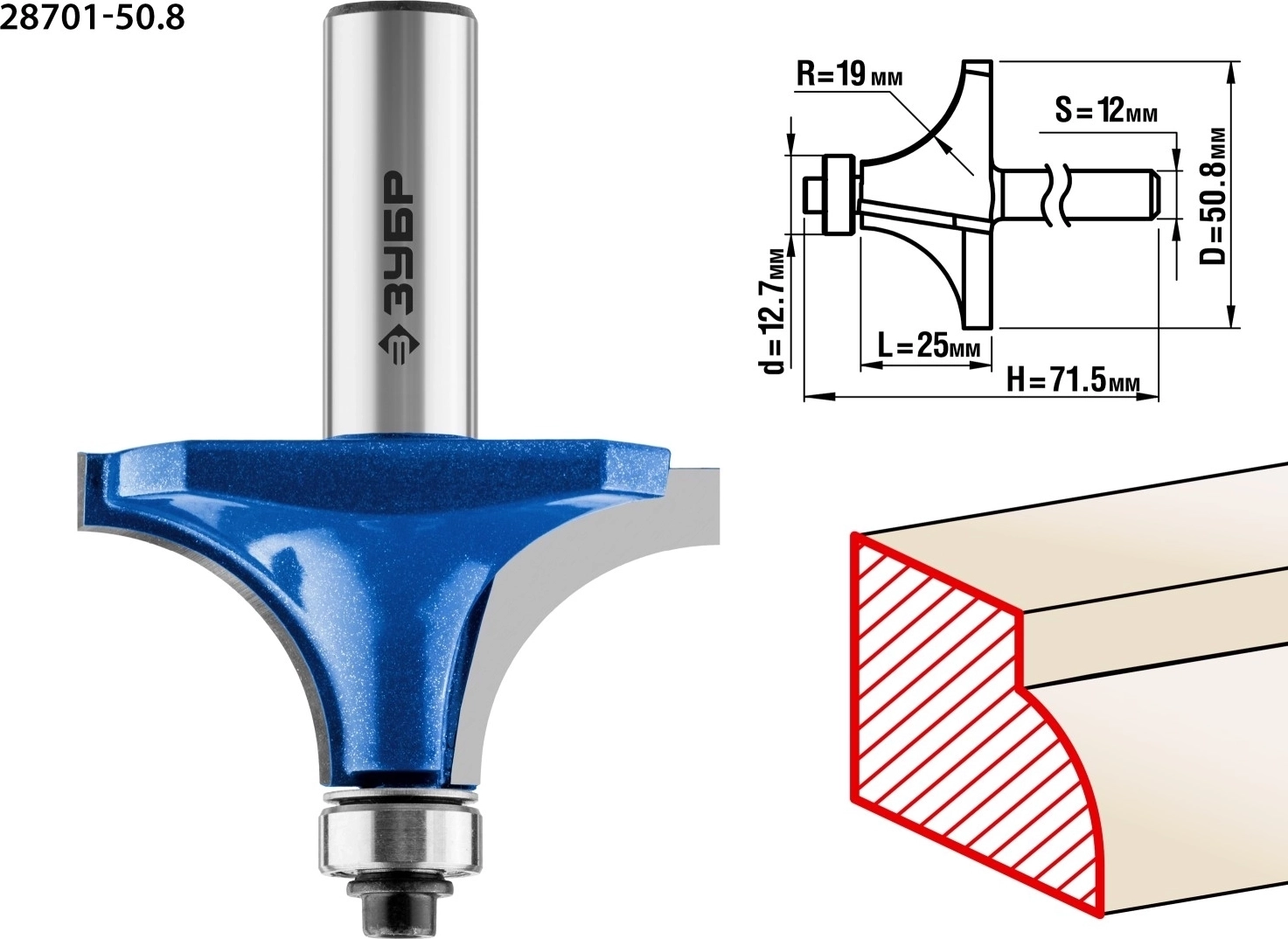 Фреза кромочная калевочная №1 50.8 x 25 мм радиус 19 мм арт. 102186