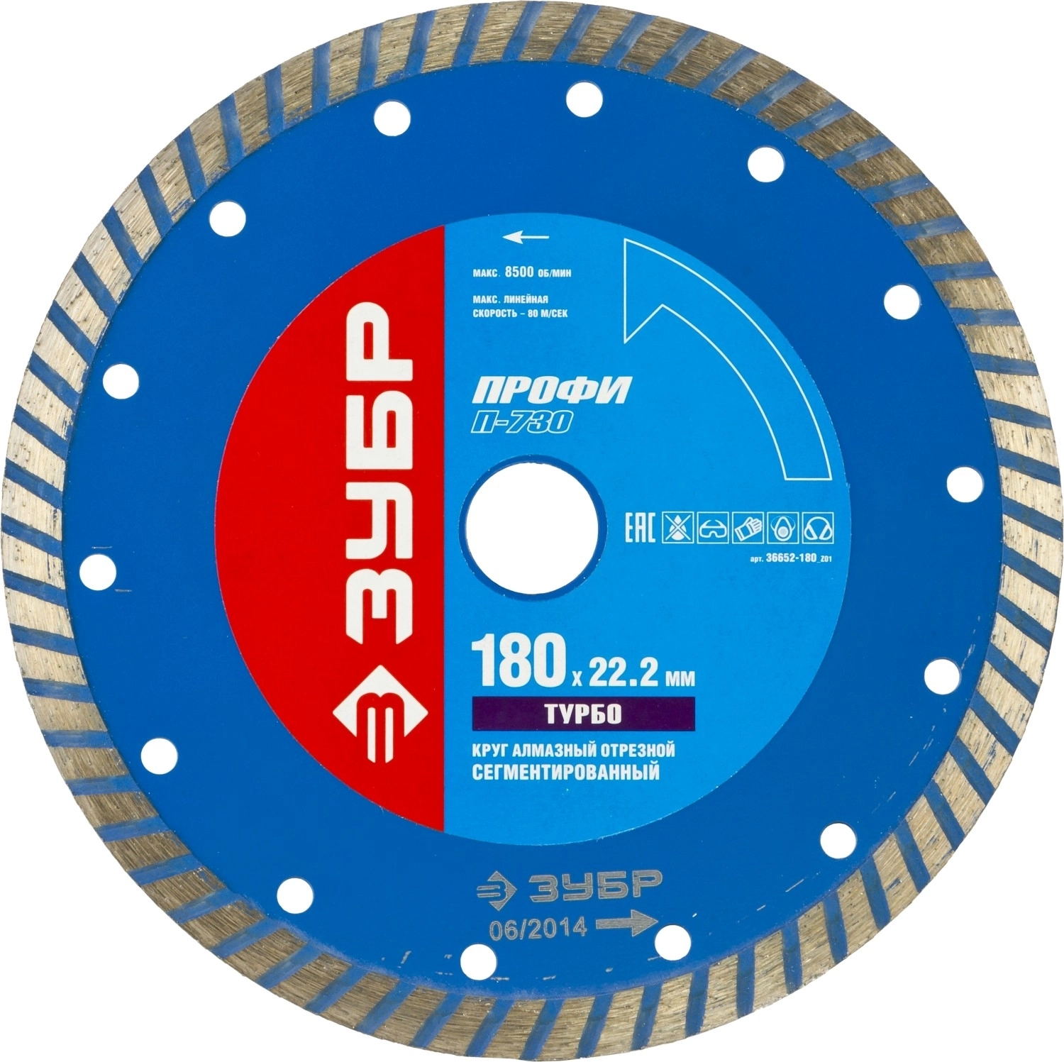 Профессионал Турборез, 180 мм, (22.2 мм, 10 х 2.6 мм), сегментированный алмазный диск арт. 118168