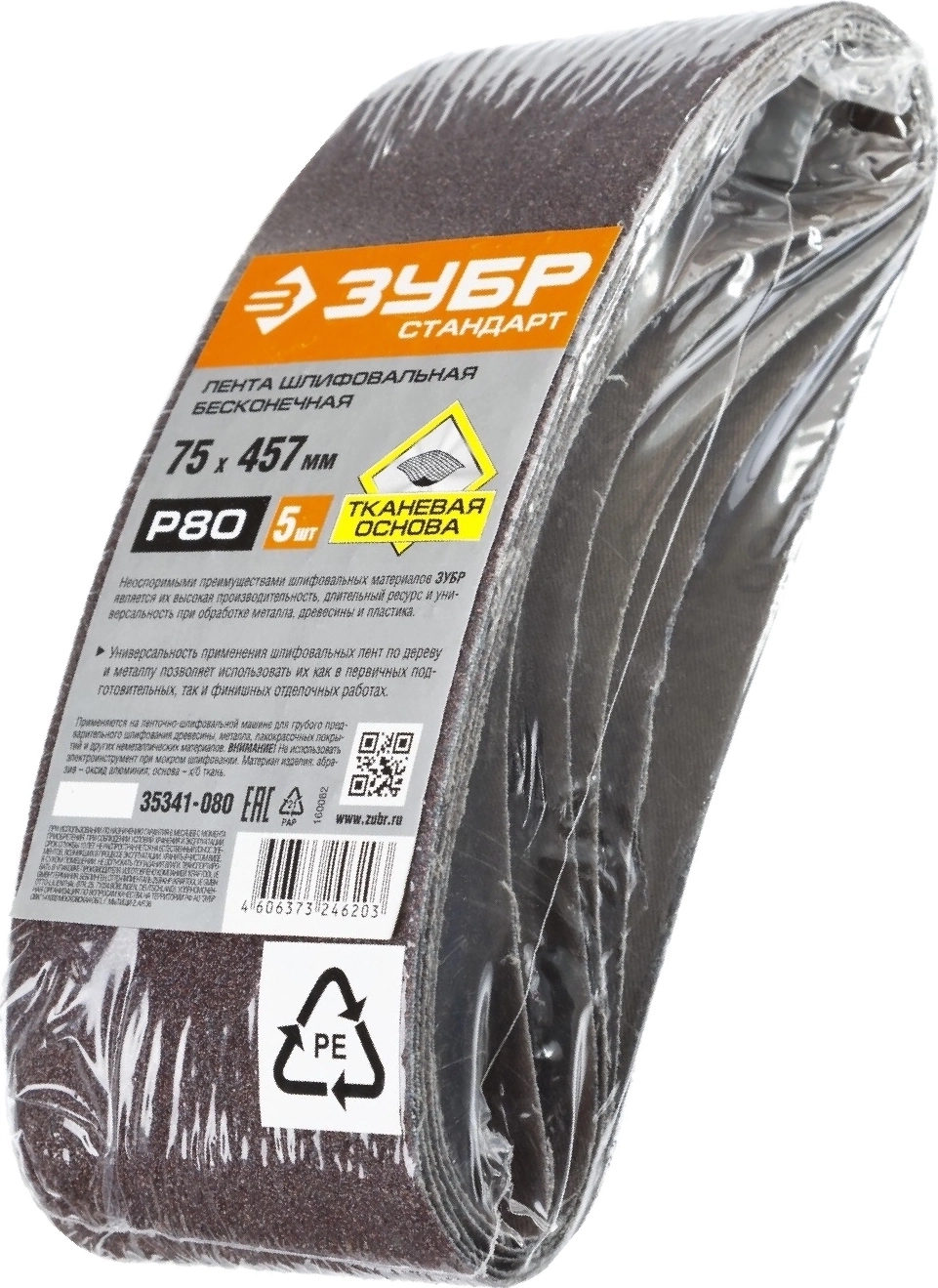 Лента шлифовальная СТАНДАРТ ЗУБР 75х457 мм P80 для ЛШМ 5 шт