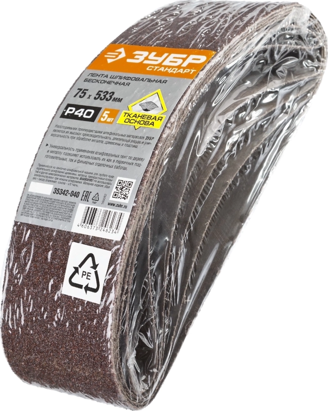 Лента шлифовальная СТАНДАРТ ЗУБР 75х533 мм P40 для ЛШМ 5 шт
