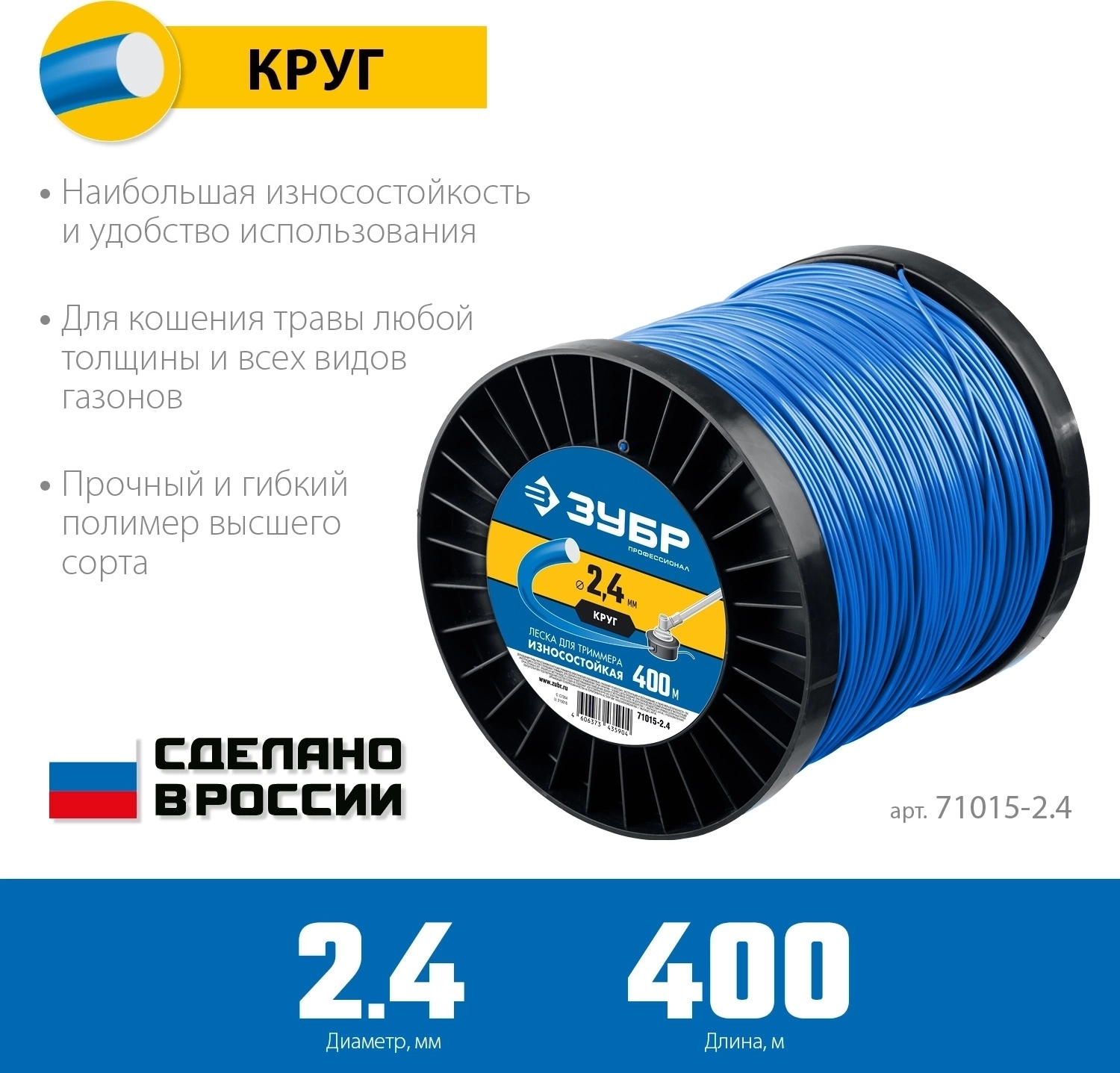 Леска для триммера ЗУБР КРУГ 2.4 мм 400 м